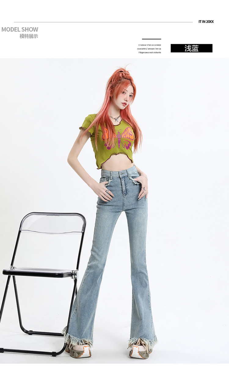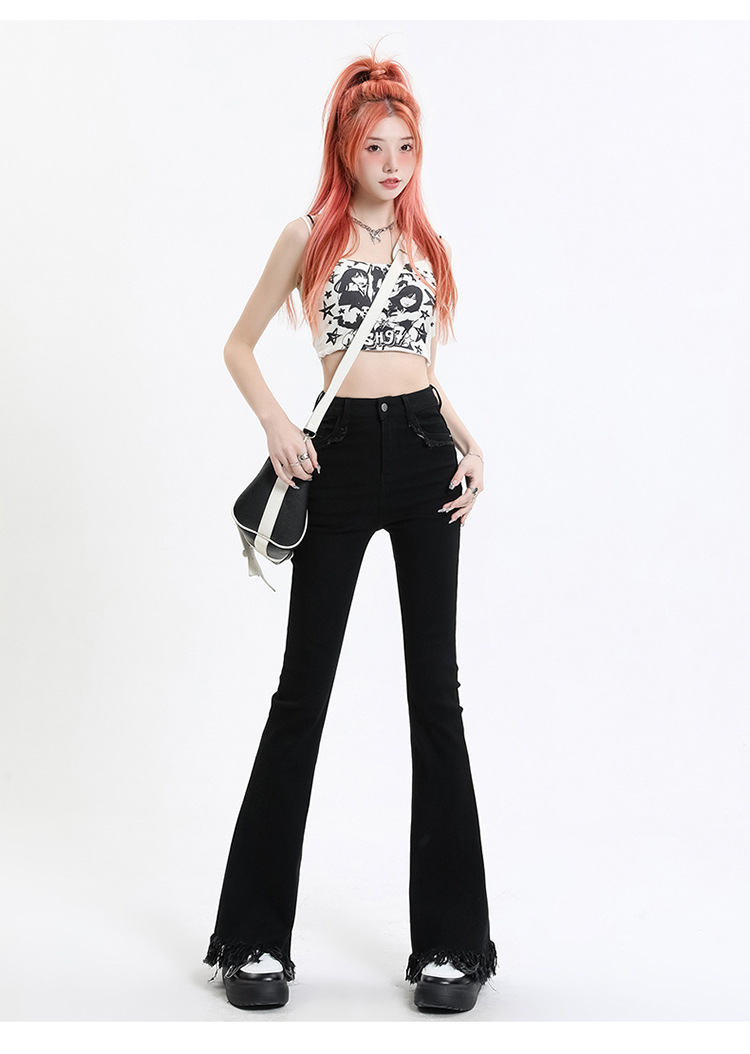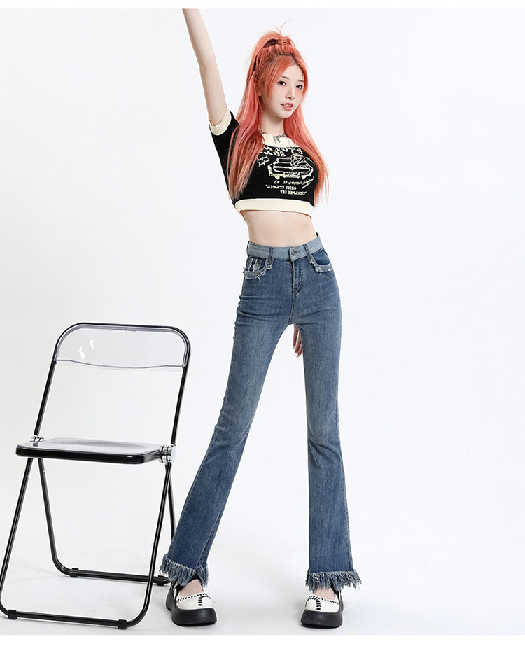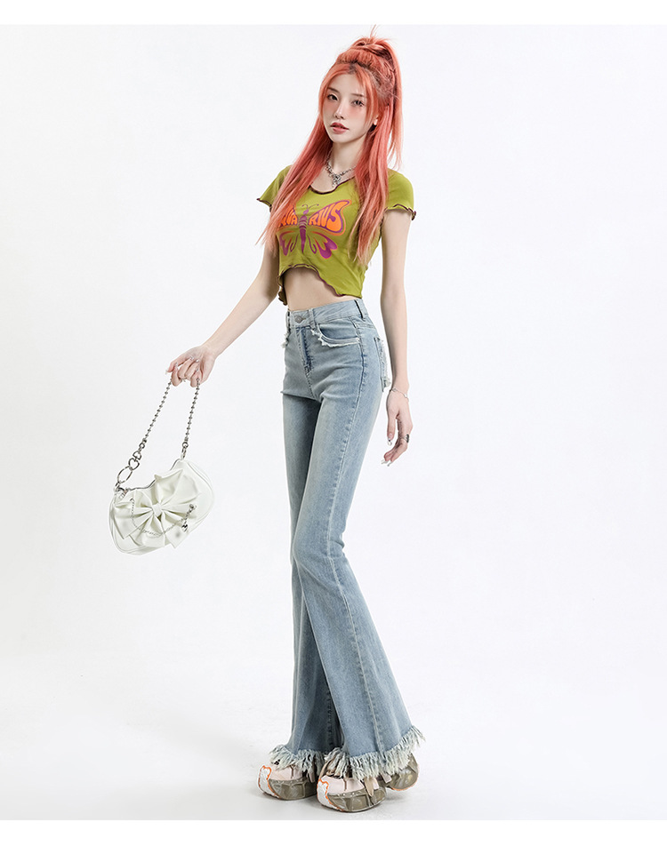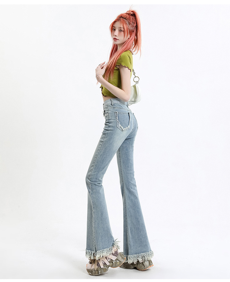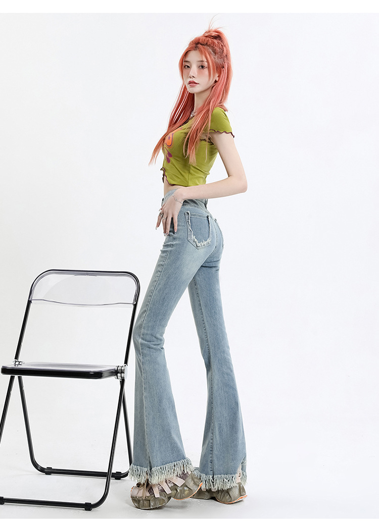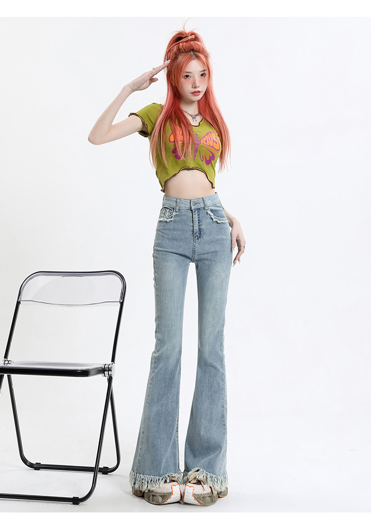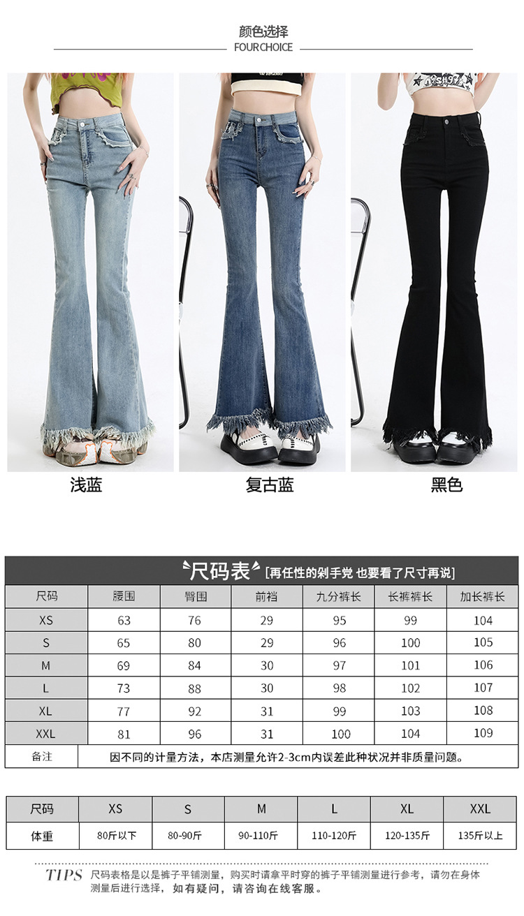 빈티지 스파이스 소녀 술 마이크로 플레어 진 여성 여름 새로운 패션 슬리밍 높은 허리 프린지 말굽 바지스토어 가기
