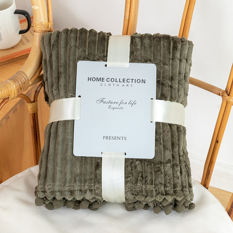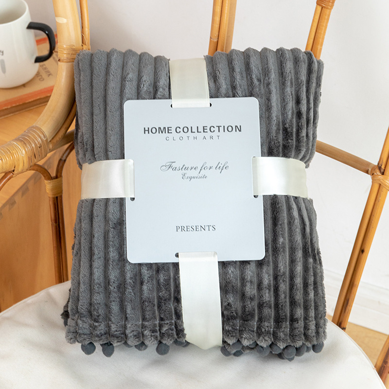 국경 간 솔리드 컬러 플란넬 스트립 담요 낮잠 레저 소파 담요 에어컨 담요 일반 줄무늬 매직 벨벳