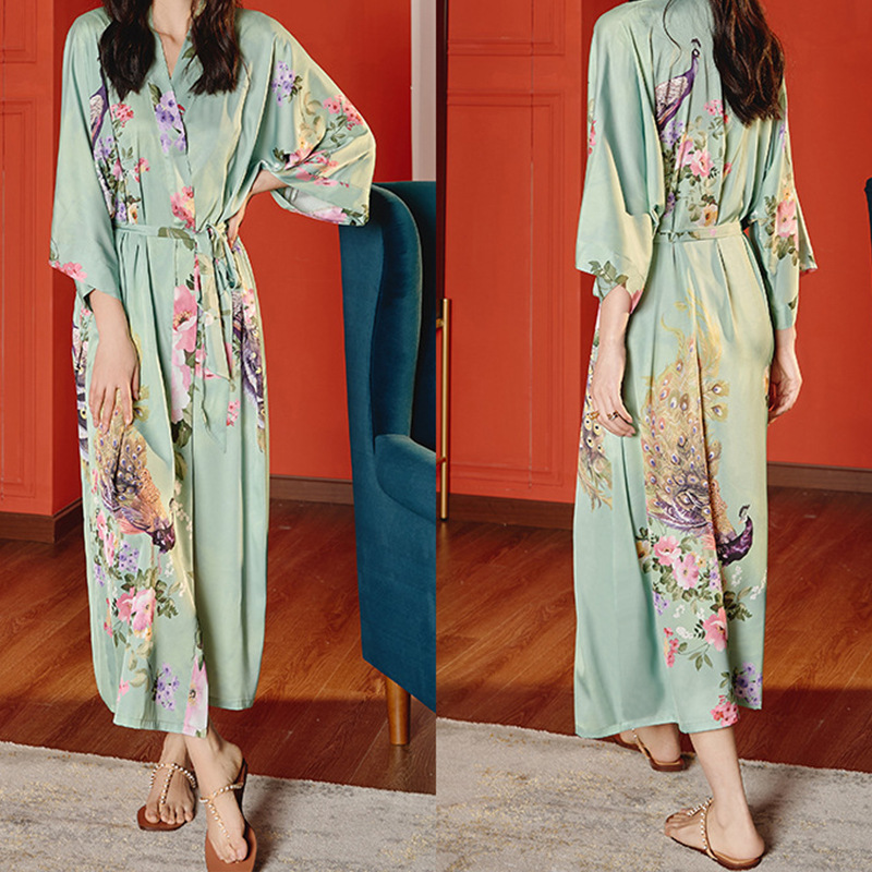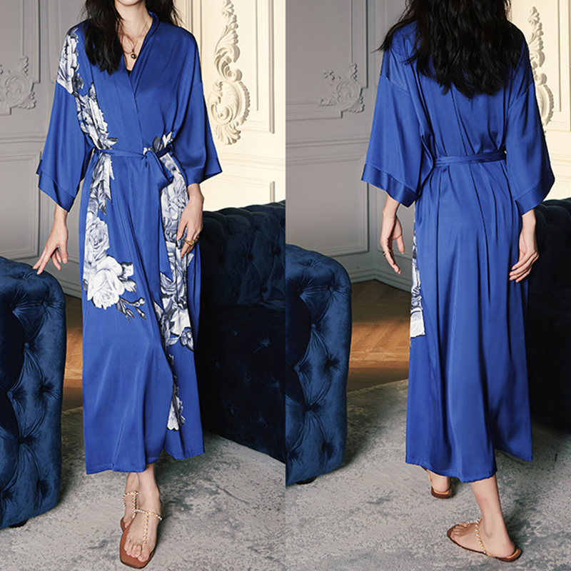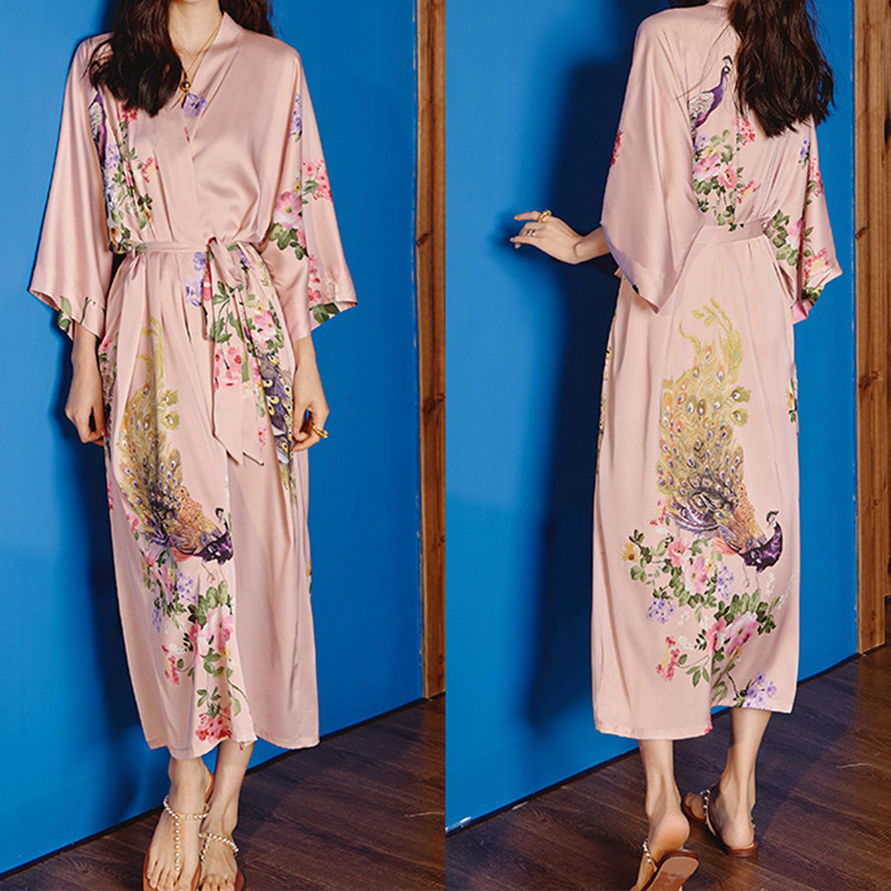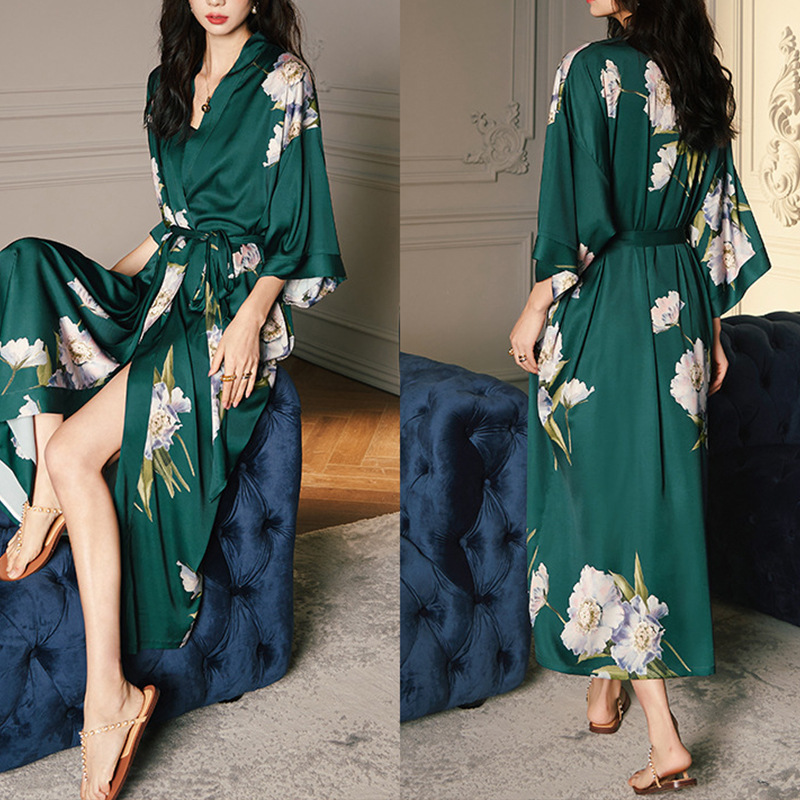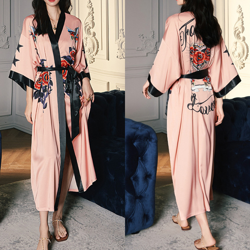 여성을위한 새로운 새틴 파자마 여성 여름 대형 조명 럭셔리 7 점 소매 멋진 잠옷 목욕 가운 홈 의류스토어 가기