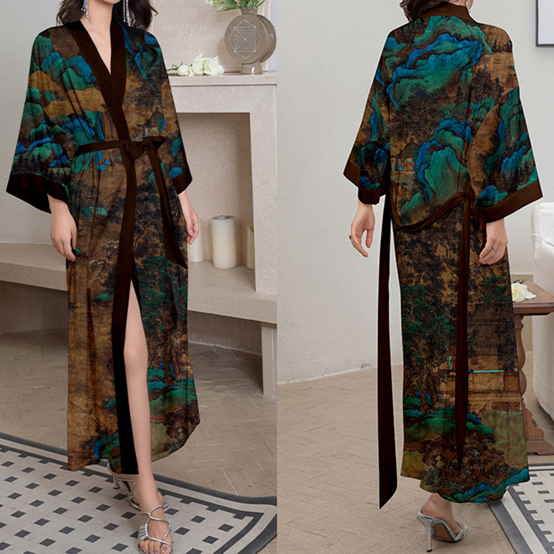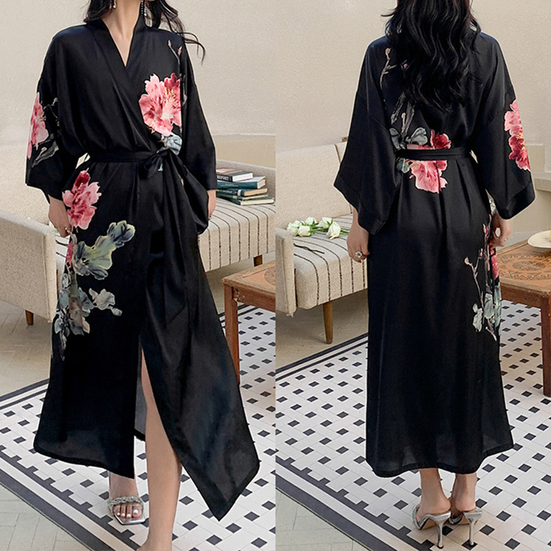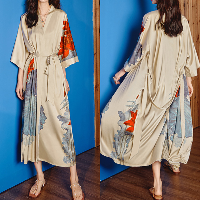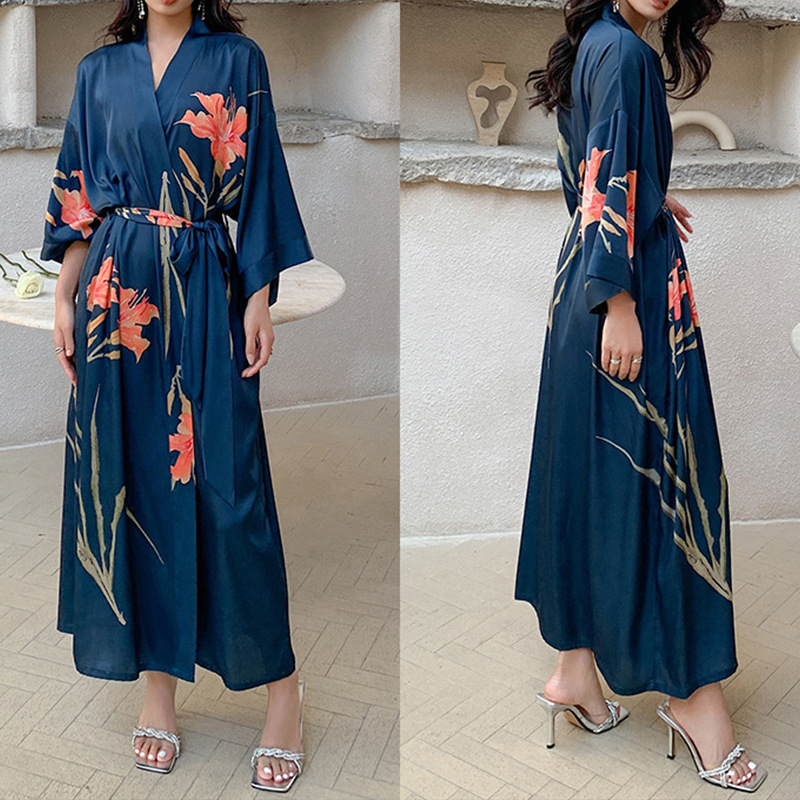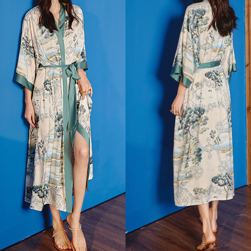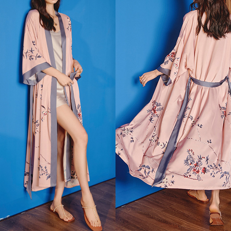 여성을위한 새로운 새틴 파자마 여성 여름 대형 조명 럭셔리 7 점 소매 멋진 잠옷 목욕 가운 홈 의류스토어 가기