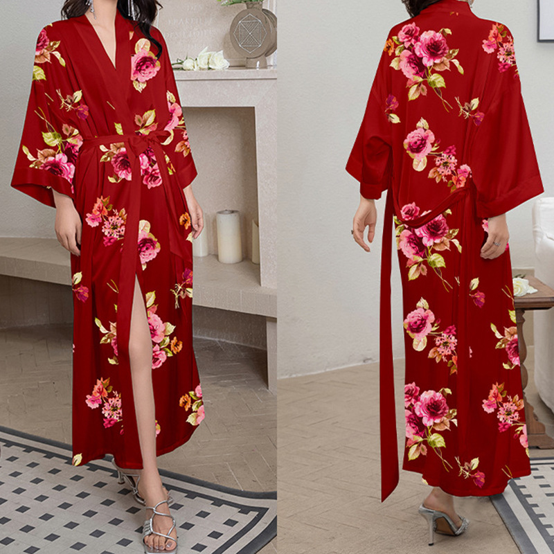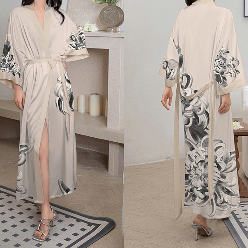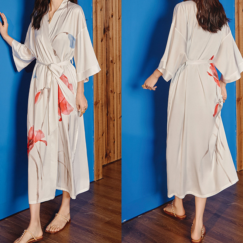 여성을위한 새로운 새틴 파자마 여성 여름 대형 조명 럭셔리 7 점 소매 멋진 잠옷 목욕 가운 홈 의류