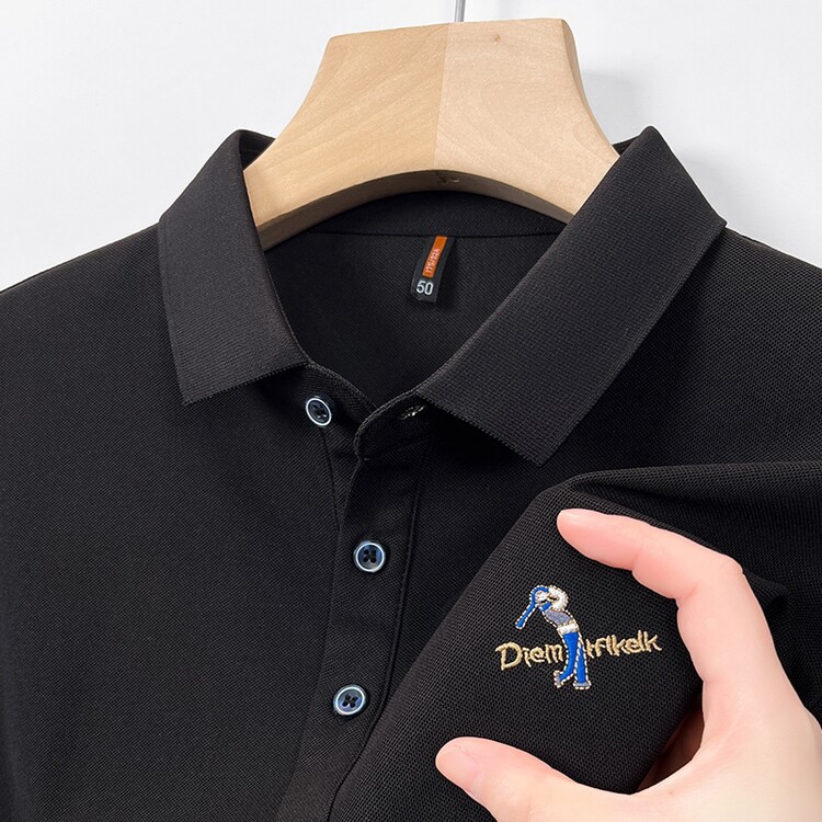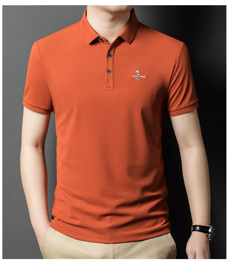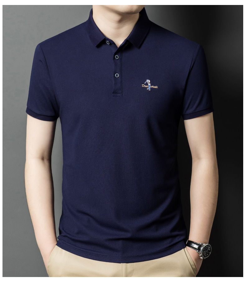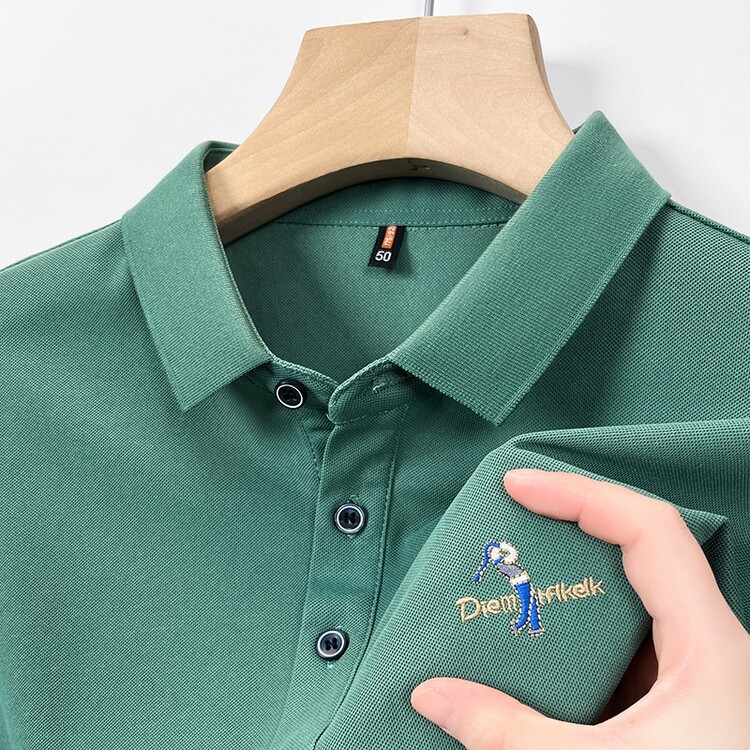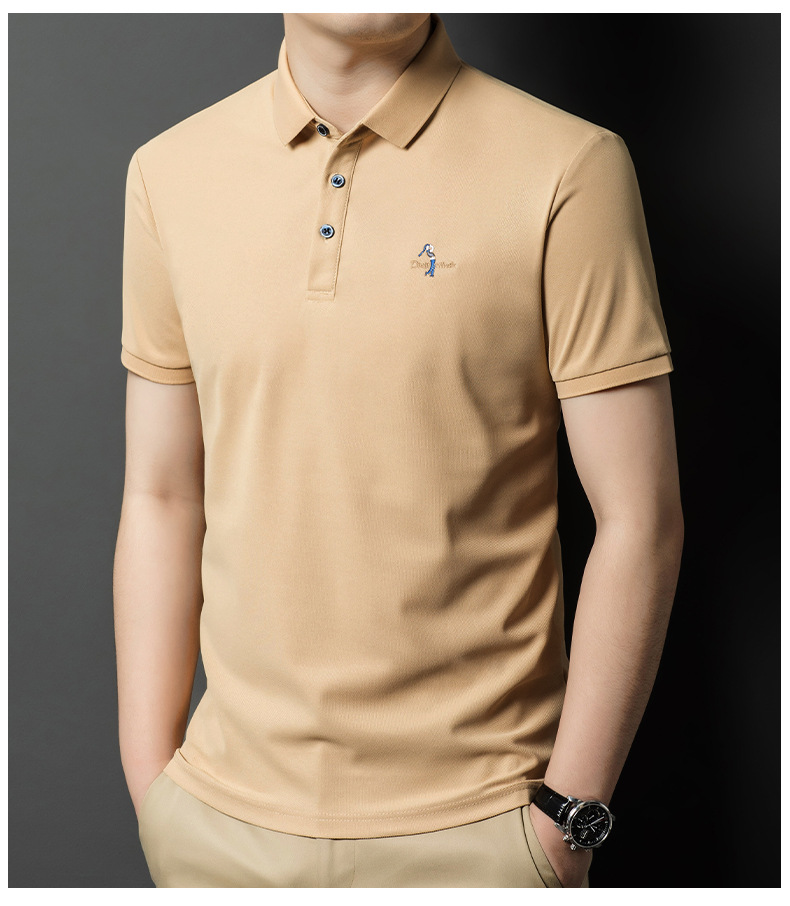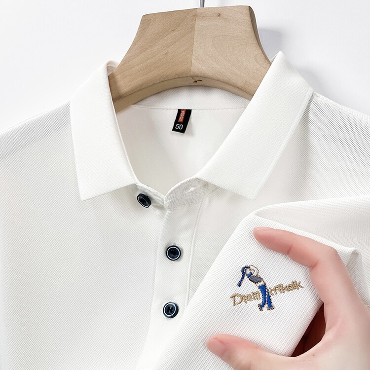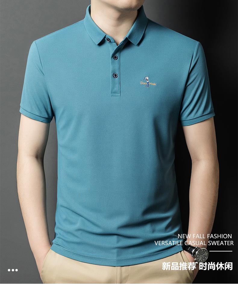젊고 중년의 새로운 자수 남성 폴로 셔츠 반팔 티셔츠 여름 아이스 실크 셔츠 옷깃 비즈니스 캐주얼 탑