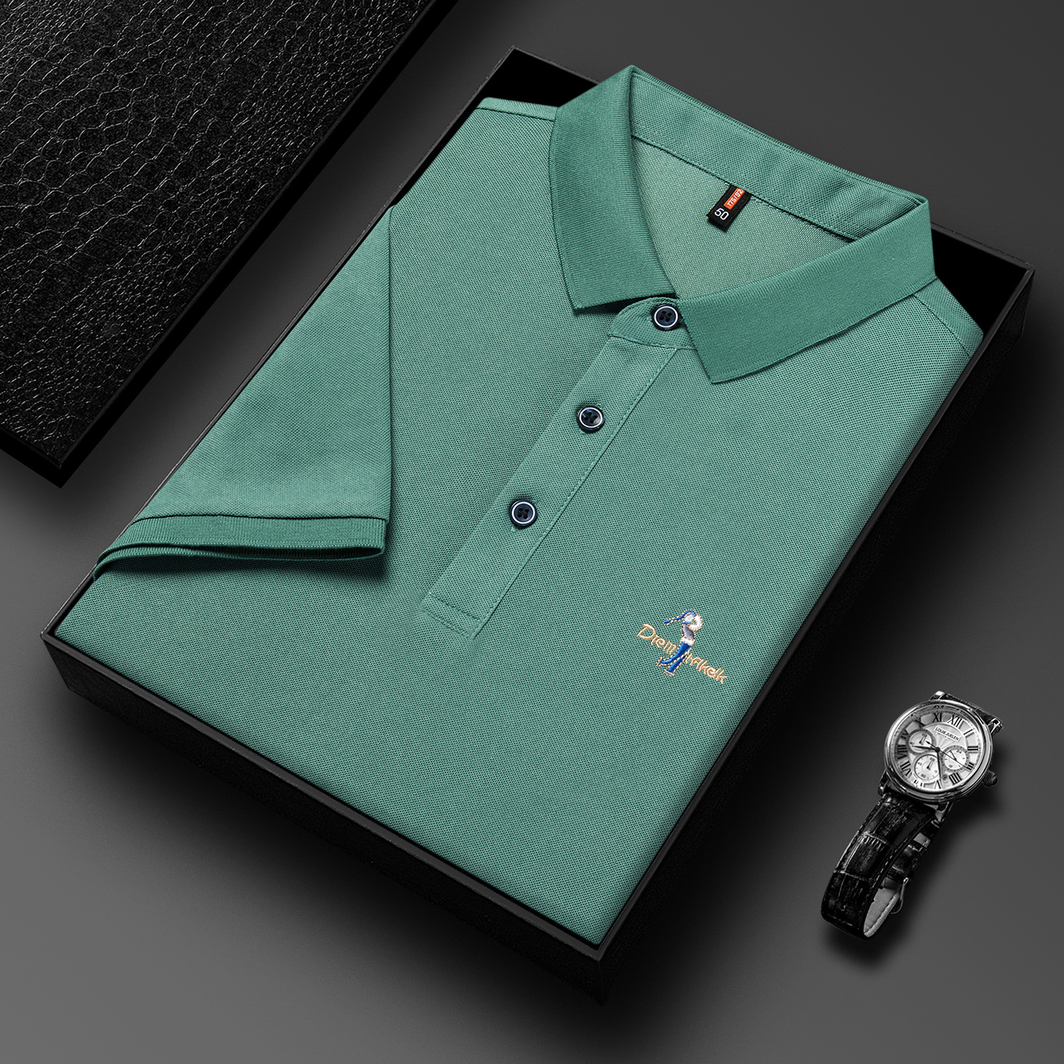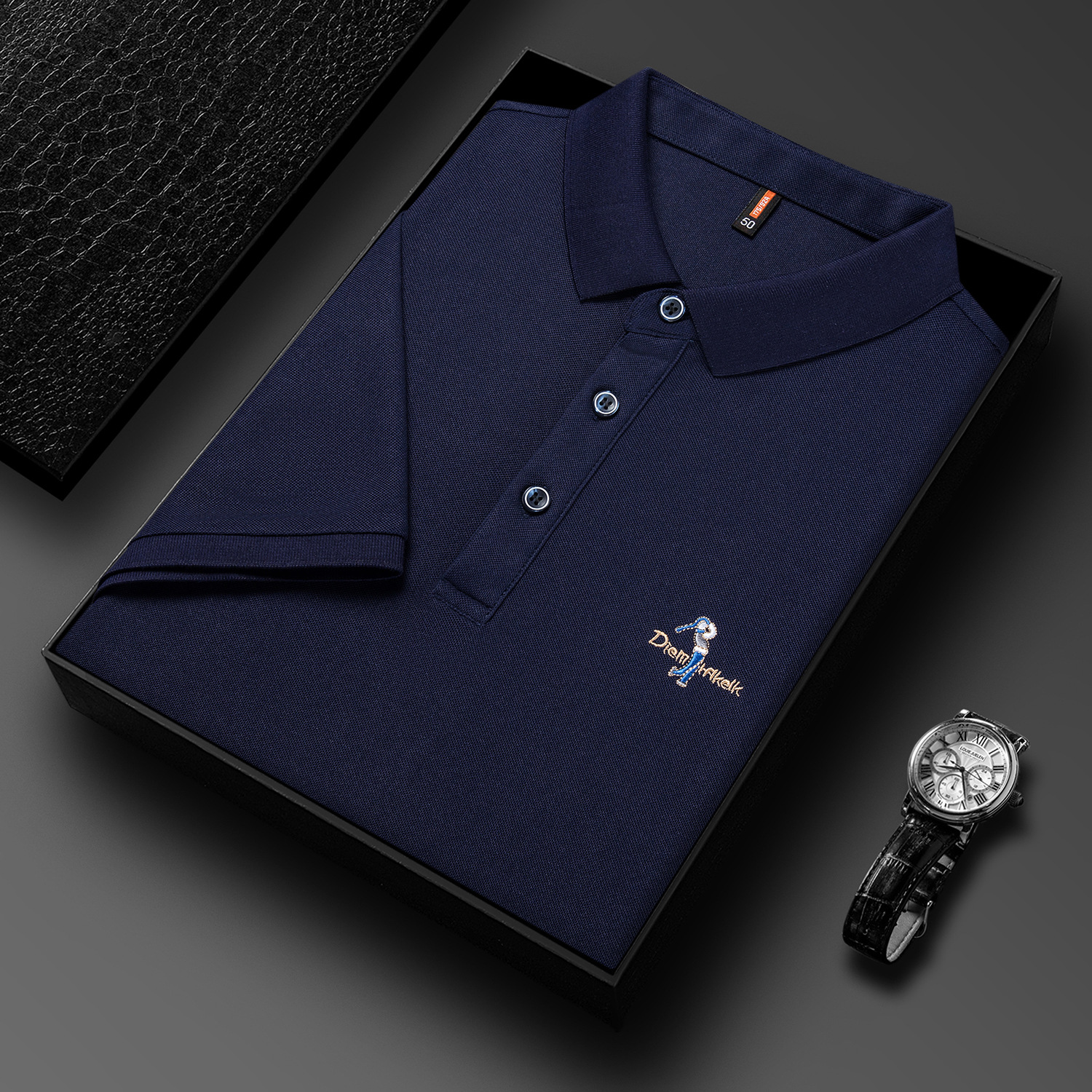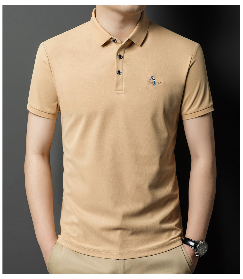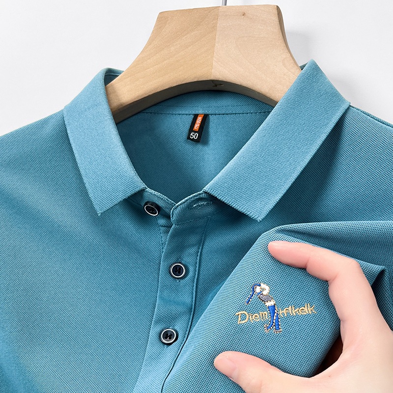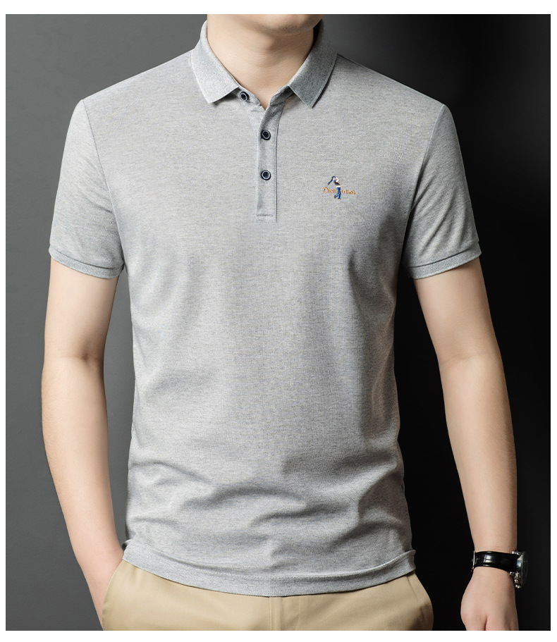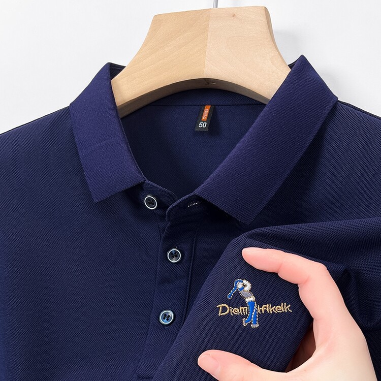 젊고 중년의 새로운 자수 남성 폴로 셔츠 반팔 티셔츠 여름 아이스 실크 셔츠 옷깃 비즈니스 캐주얼 탑