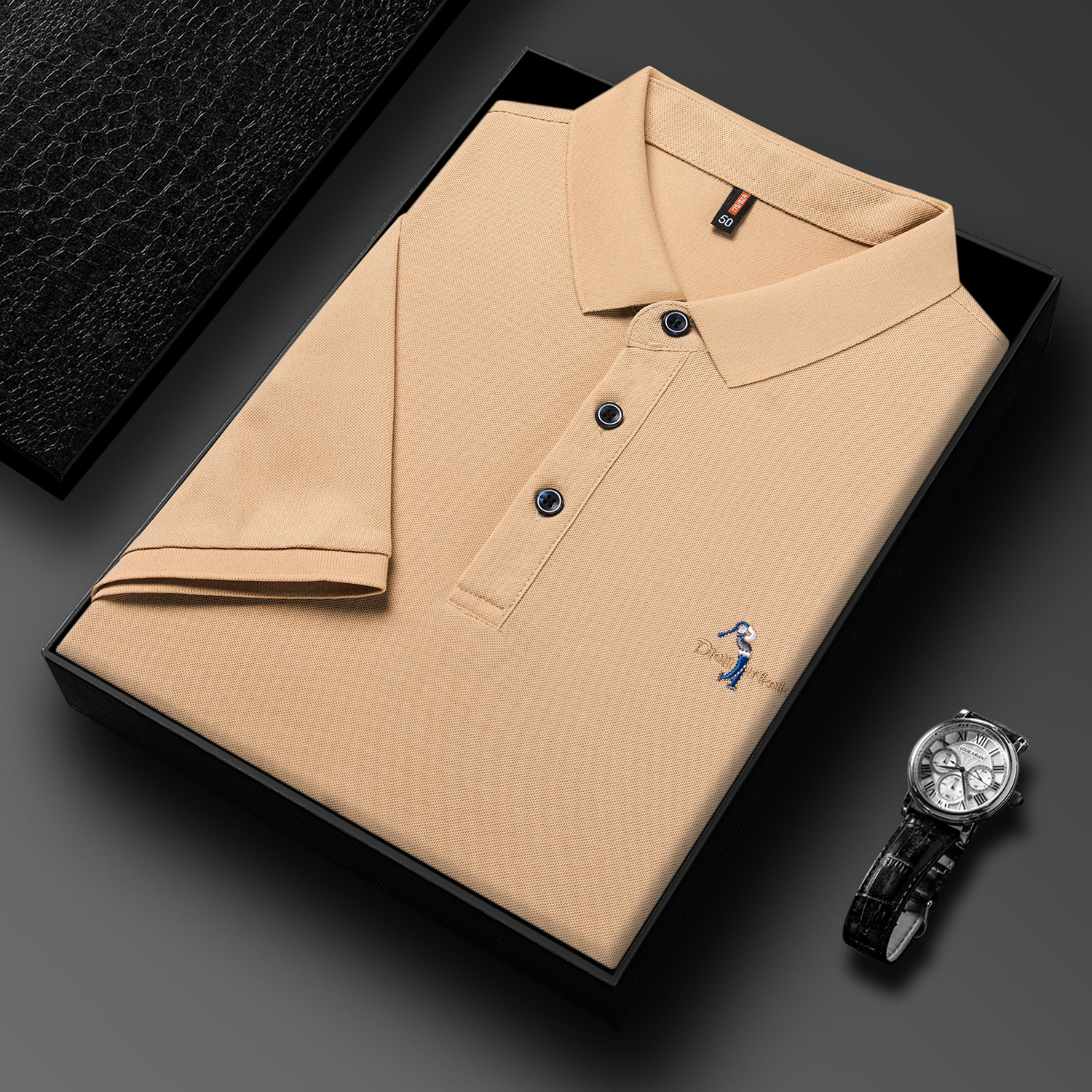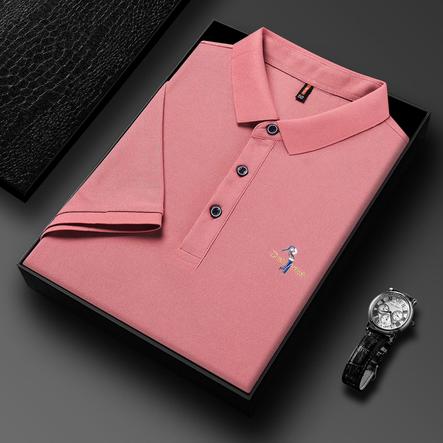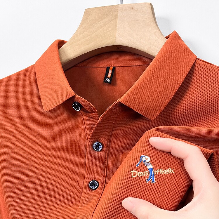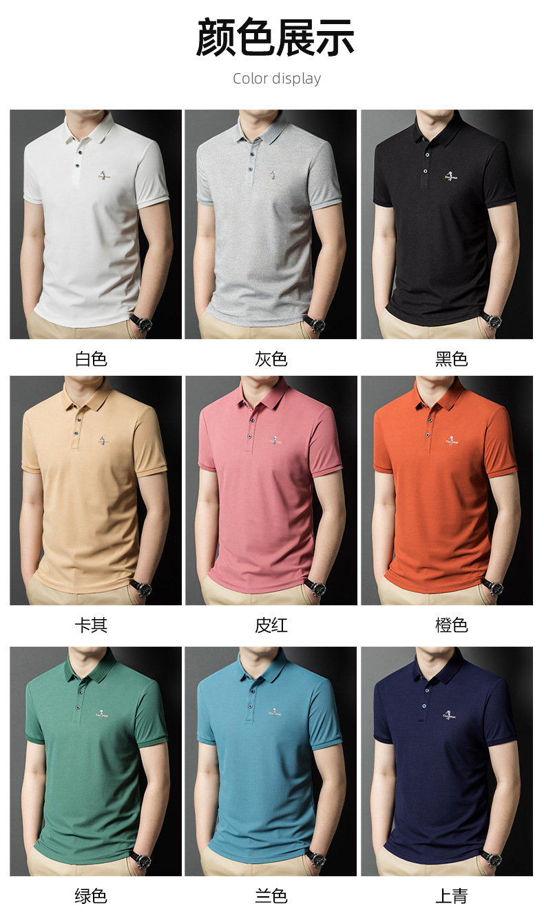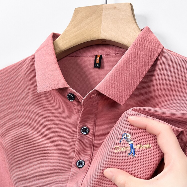 젊고 중년의 새로운 자수 남성 폴로 셔츠 반팔 티셔츠 여름 아이스 실크 셔츠 옷깃 비즈니스 캐주얼 탑