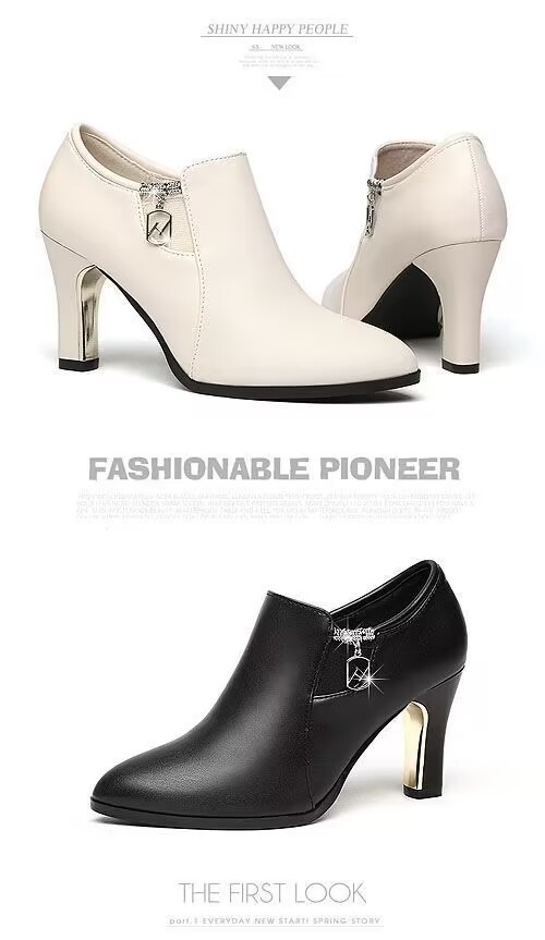 2024 봄과 가을 새로운 대외 무역 지퍼 여성 싱글 신발 패션 올 매치 국경 무역 국경 간 여성 하이힐 가죽 신발