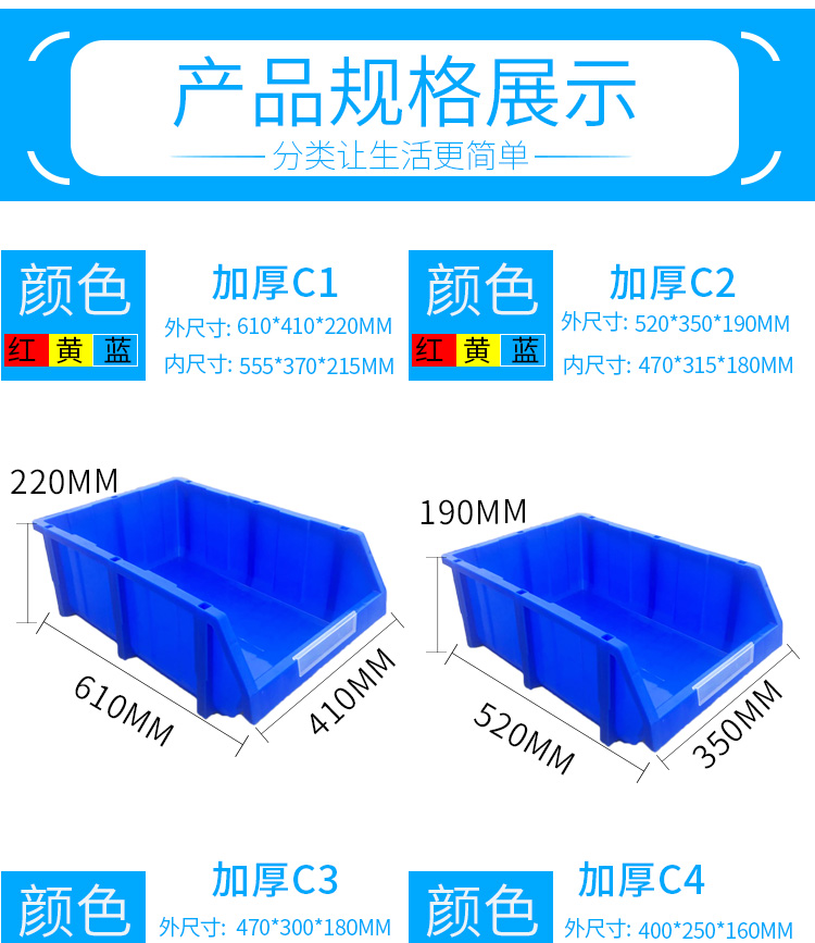 • 두꺼운 파란색 C1 #610*410*220 빨강, 노랑 및 파랑 3 색 옵션