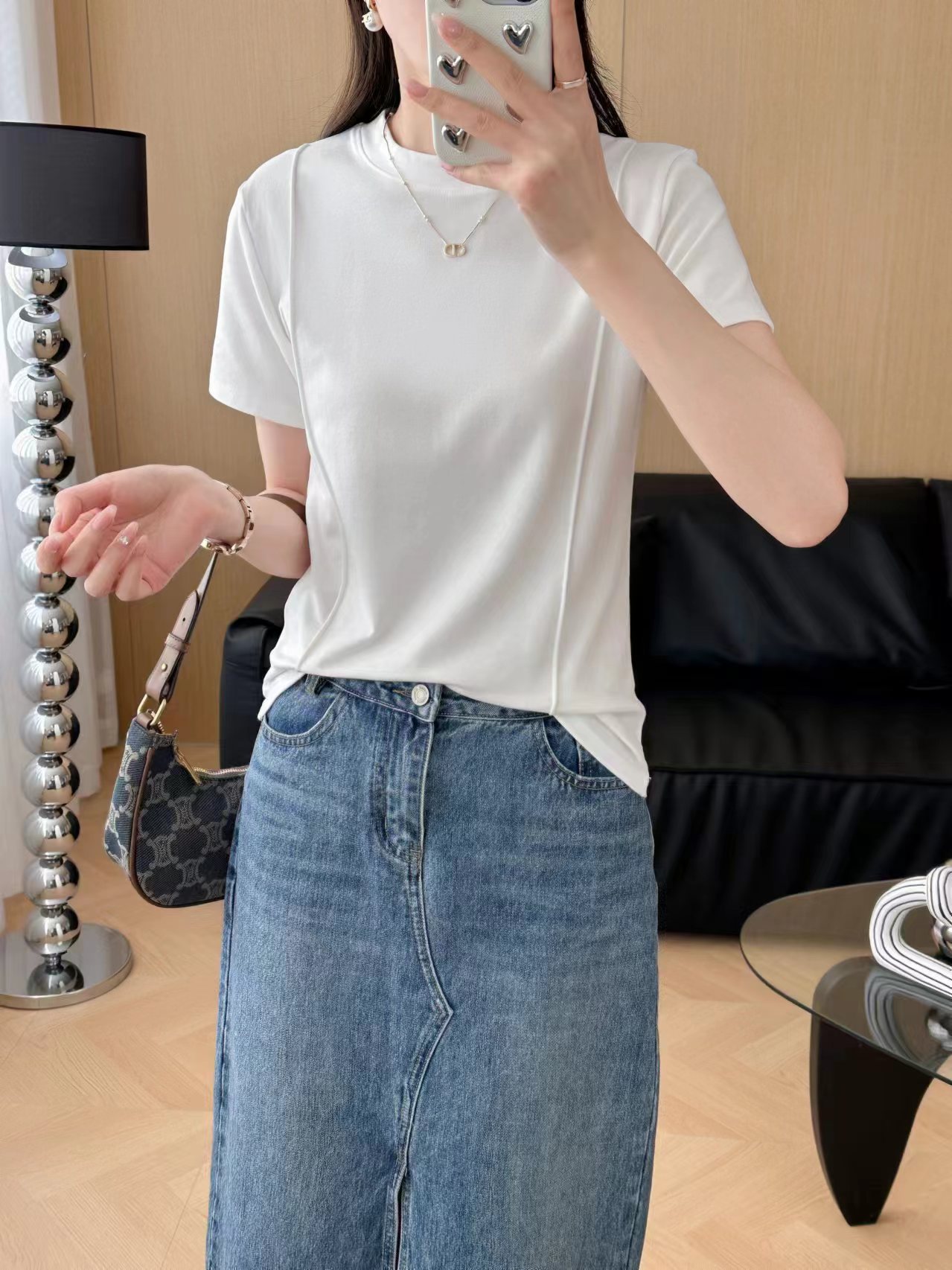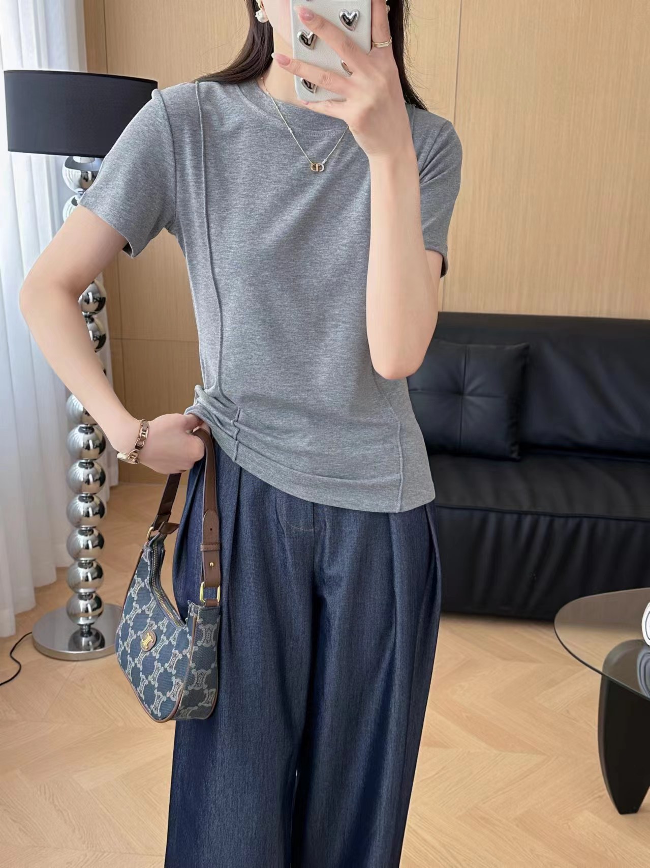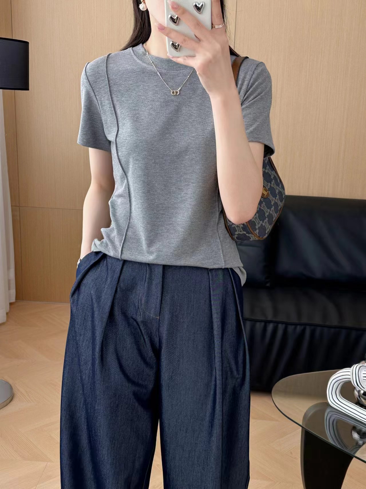 크루 넥 반팔 티셔츠 여성 여름 2024 새로운 T 디자인 센스 슬리밍 불규칙한 단색 피본 올매치 탑스토어 가기