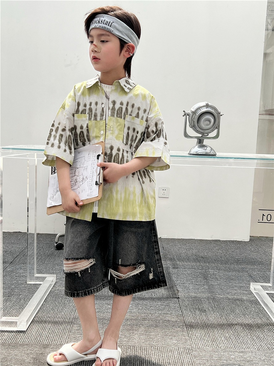 2025 여름 아동 데님 반바지, 찢어진 허리밴드 아메리칸 레트로 블랙 남녀공용 데님 반바지 트렌디스토어 가기