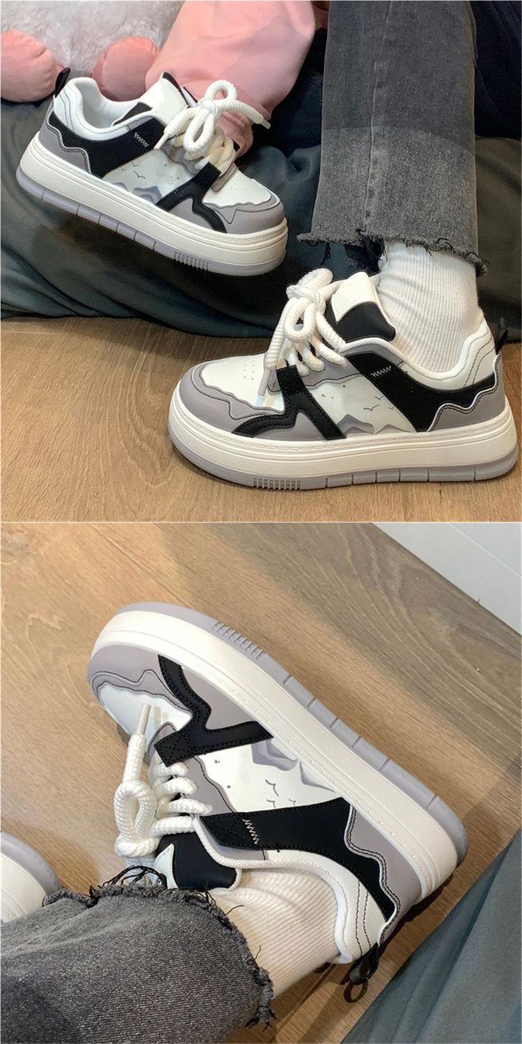 일본 팬더 큰 헤드 보드 신발 여성의 2024 봄 새로운 틈새 디자인 센스 가죽 스포츠 캐주얼 신발 흰색 신발스토어 가기