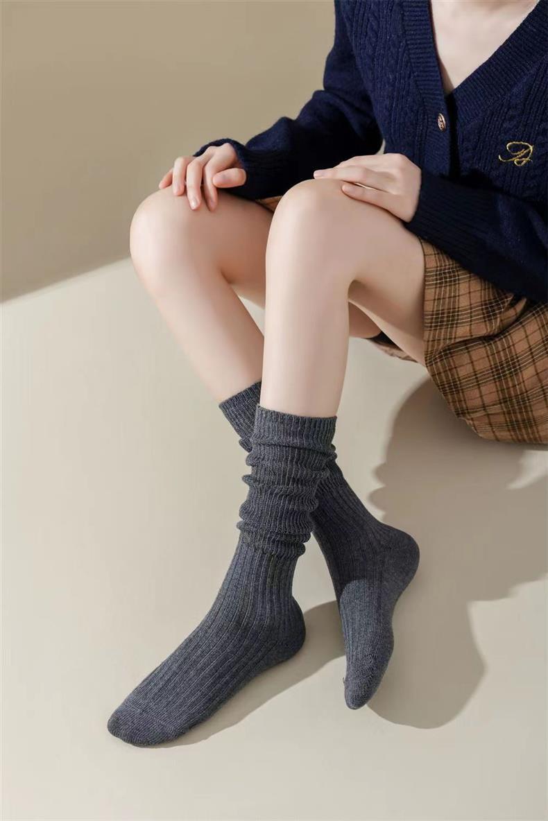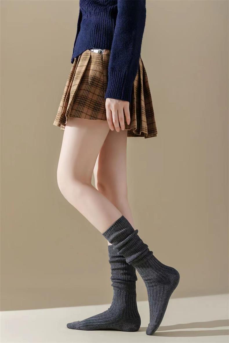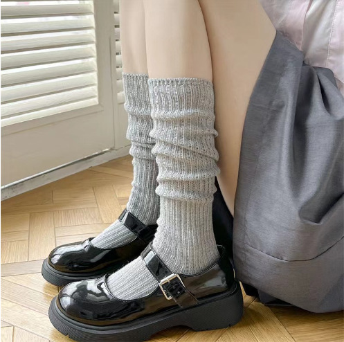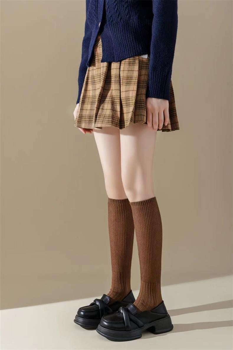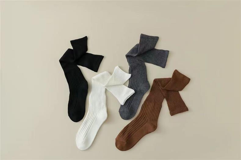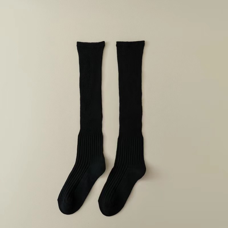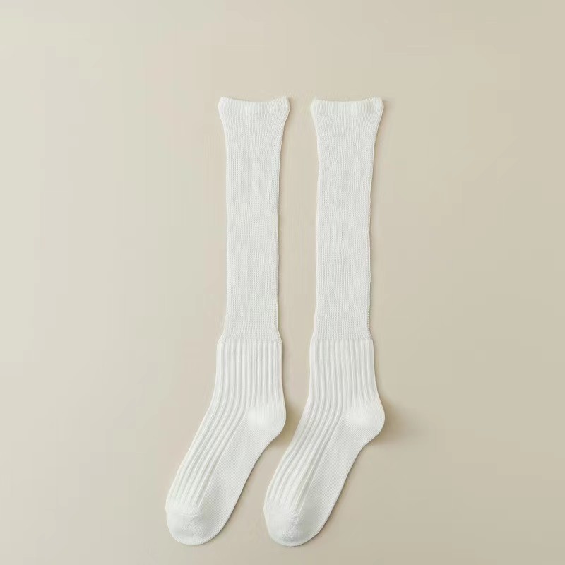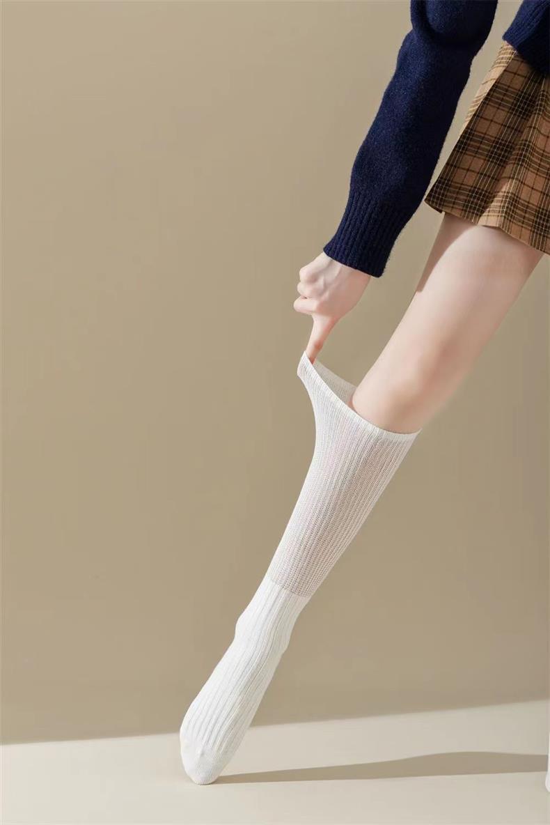 새로운 양말 여성의 한국 봄과 가을 새로운 단색 캐주얼 발 양말 더블 바늘 수직 줄무늬 무릎 양말 긴 배럴 스택 양말