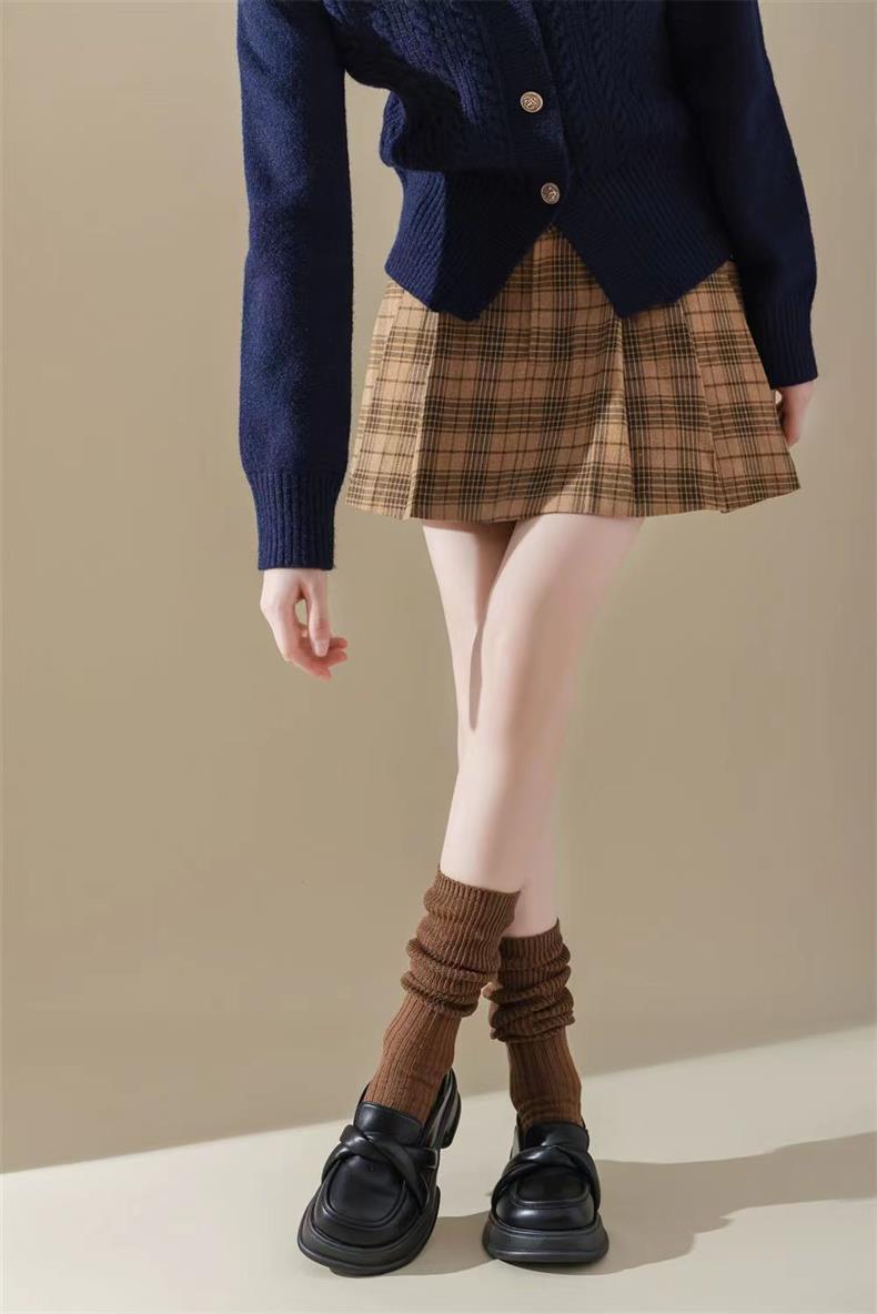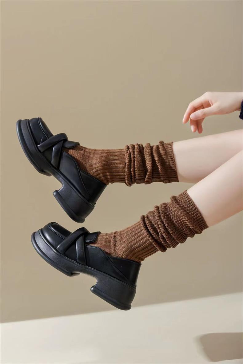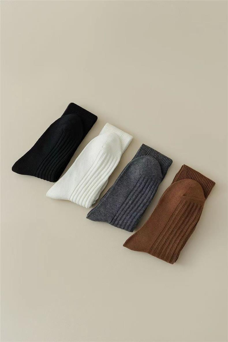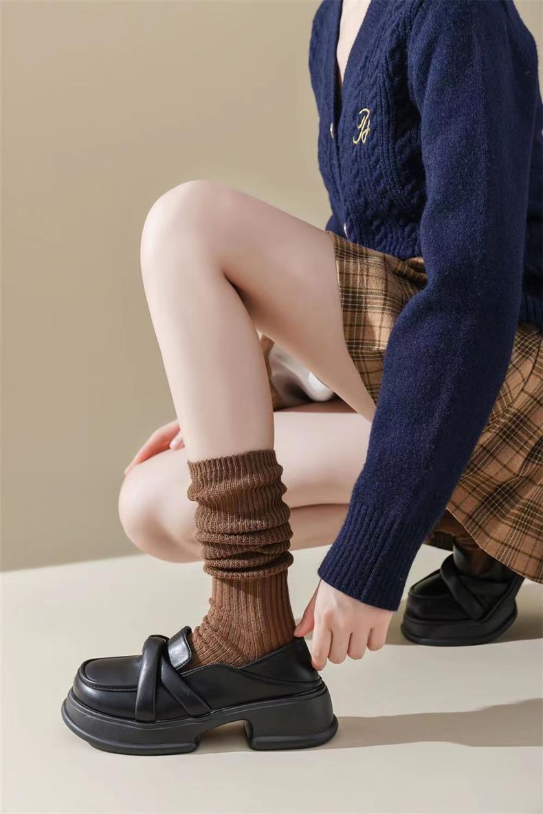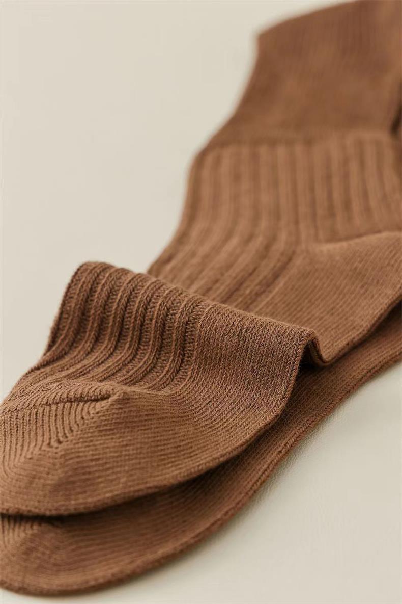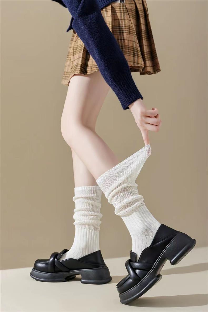새로운 양말 여성의 한국 봄과 가을 새로운 단색 캐주얼 발 양말 더블 바늘 수직 줄무늬 무릎 양말 긴 배럴 스택 양말