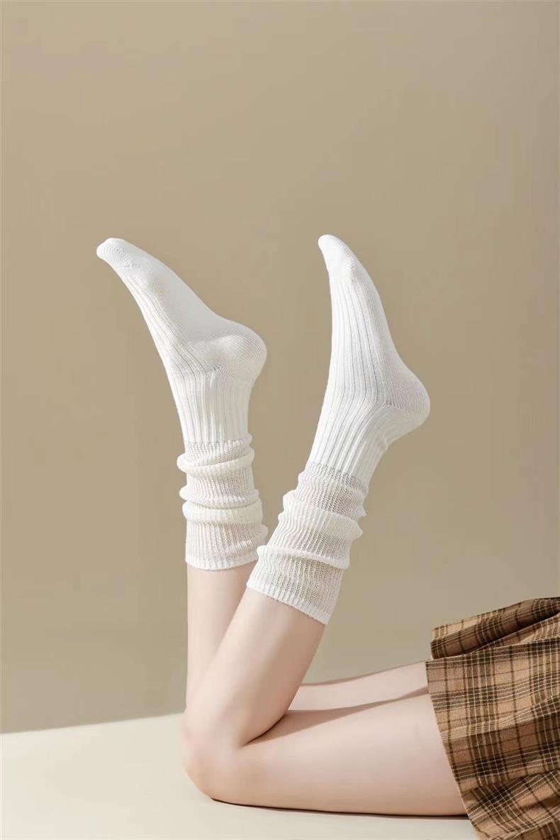 새로운 양말 여성의 한국 봄과 가을 새로운 단색 캐주얼 발 양말 더블 바늘 수직 줄무늬 무릎 양말 긴 배럴 스택 양말스토어 가기