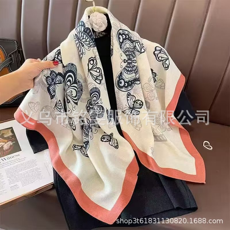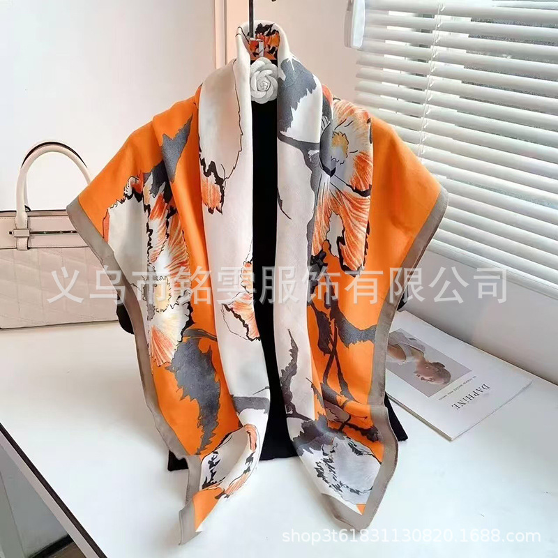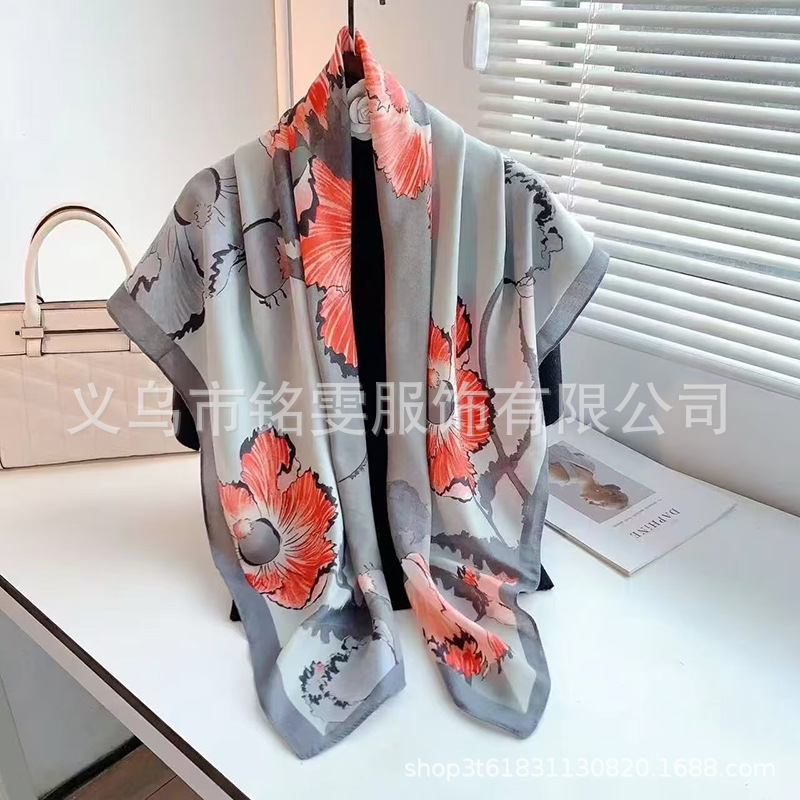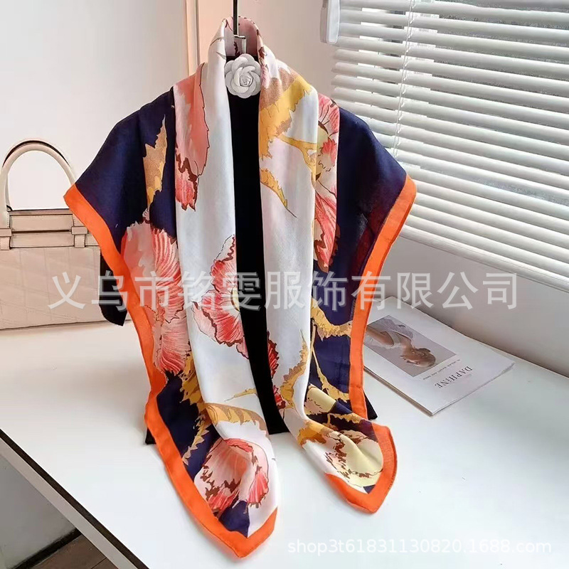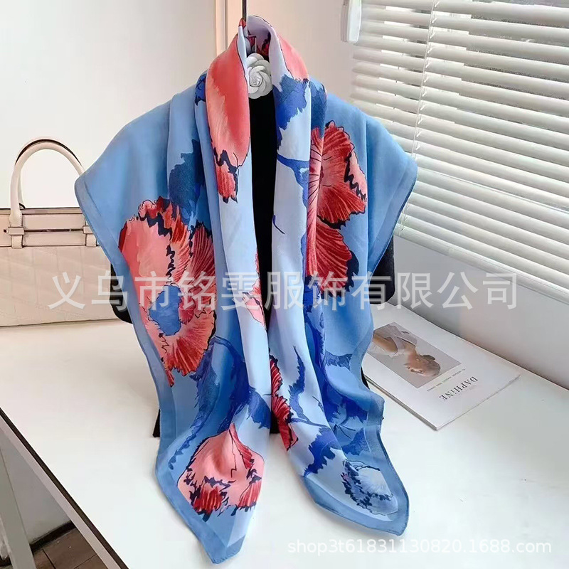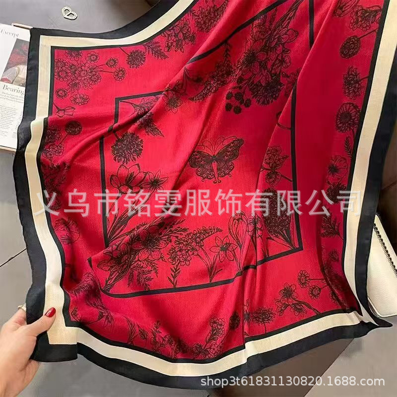 90 평방 스카프 면 스카프 봄과 여름 목도리 한국 스카프 얇은 스카프 그물 레드 라이브 실크 스카프 도매