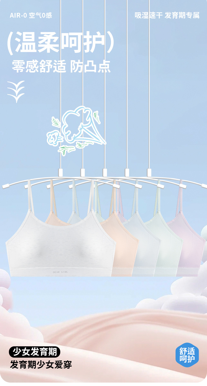 리데메이 6057 여아 발달기 2단계 심리스 조끼형 속옷 통기성 무감각 중학생 스포츠 브라스토어 가기