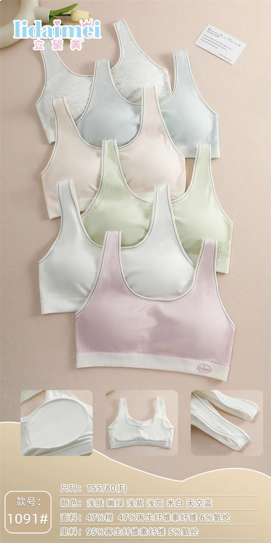 Lidaimei 1091 Girs의 발달 속옷 고등학생 중학생 아름다운 뒷조끼 여성 브라 어린이 속옷스토어 가기