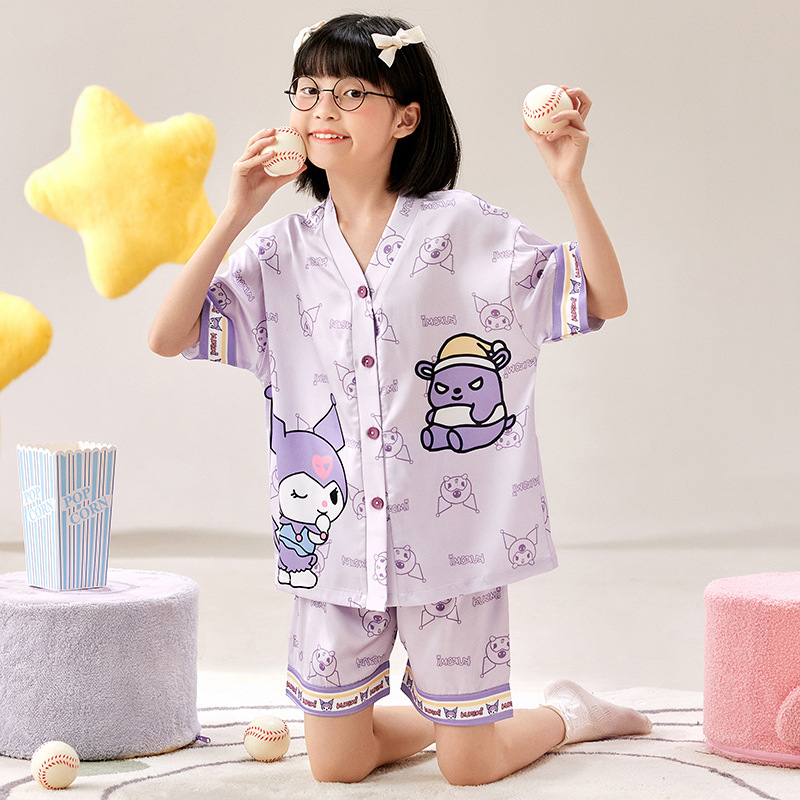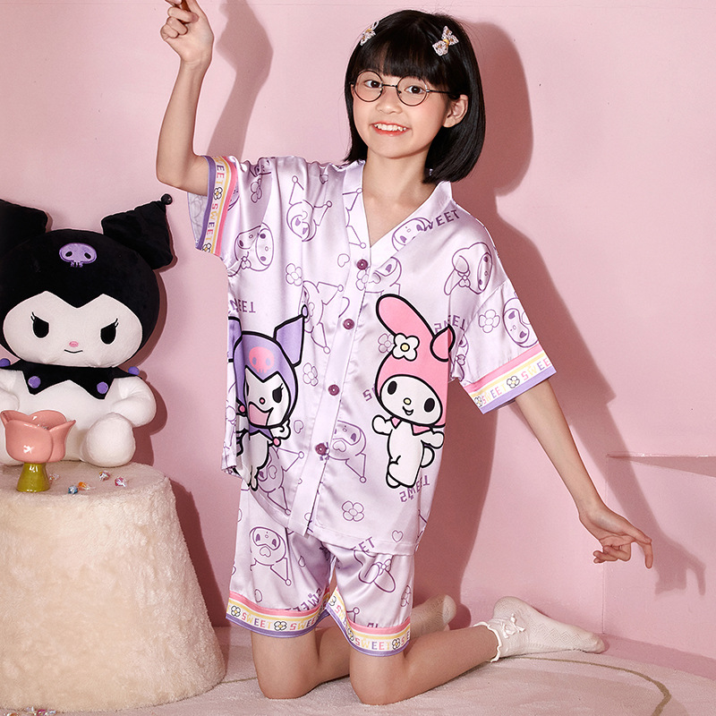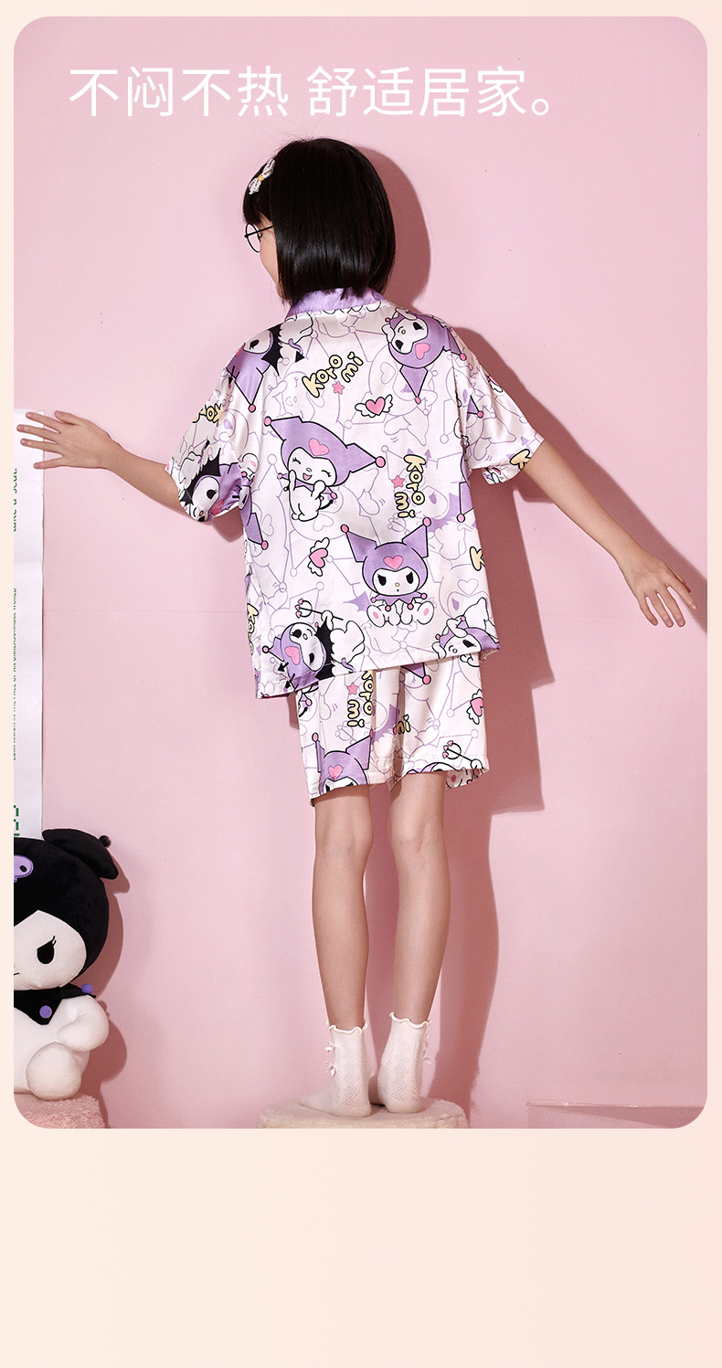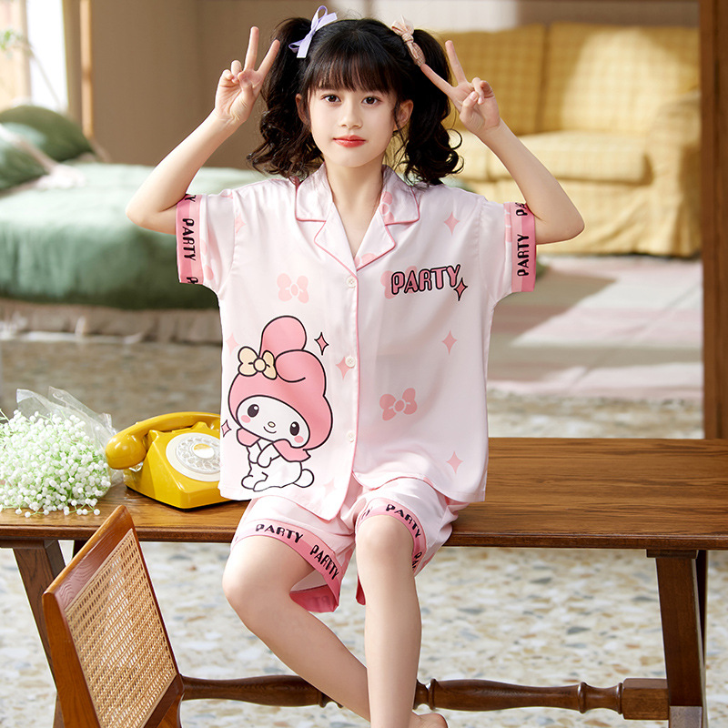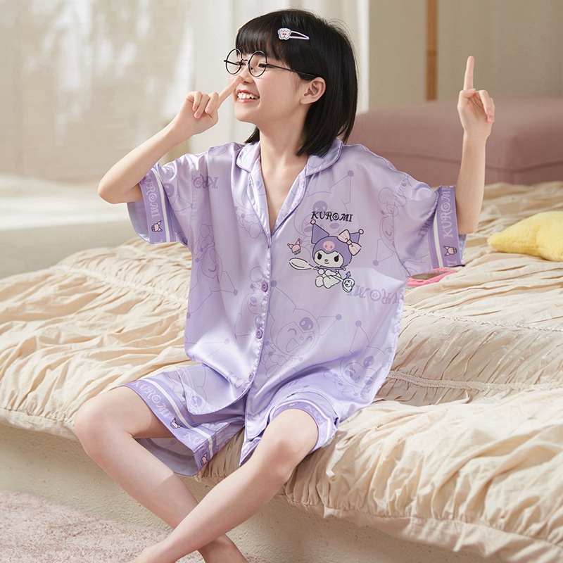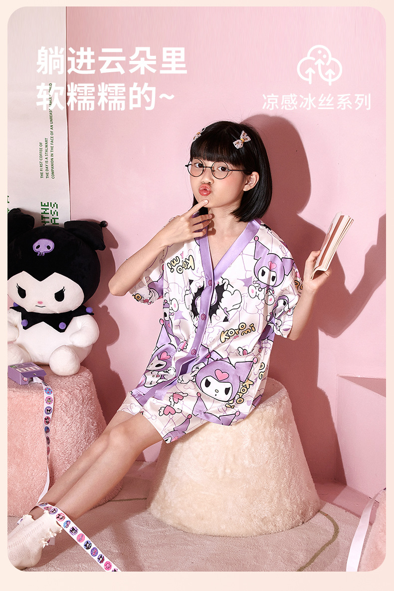 어린이 잠옷 소녀 여름 얇은 여름 아이스 실크 소녀 큰 아이들 실크 홈 옷 2024 새로운 Kulomi