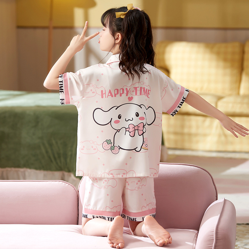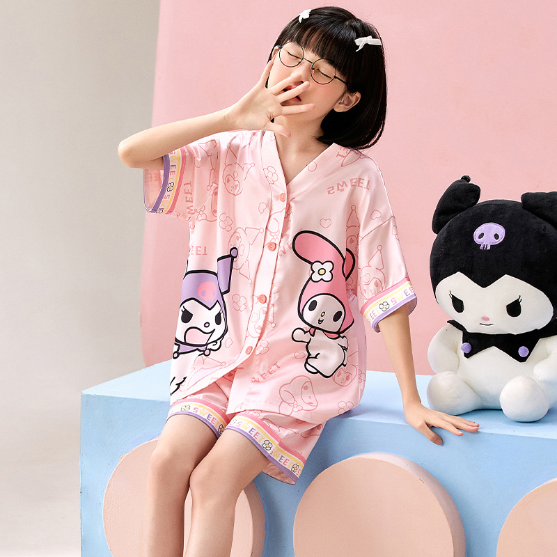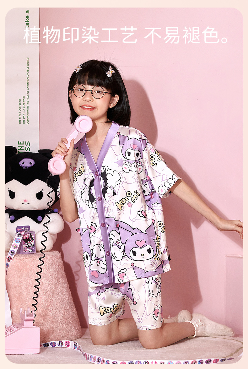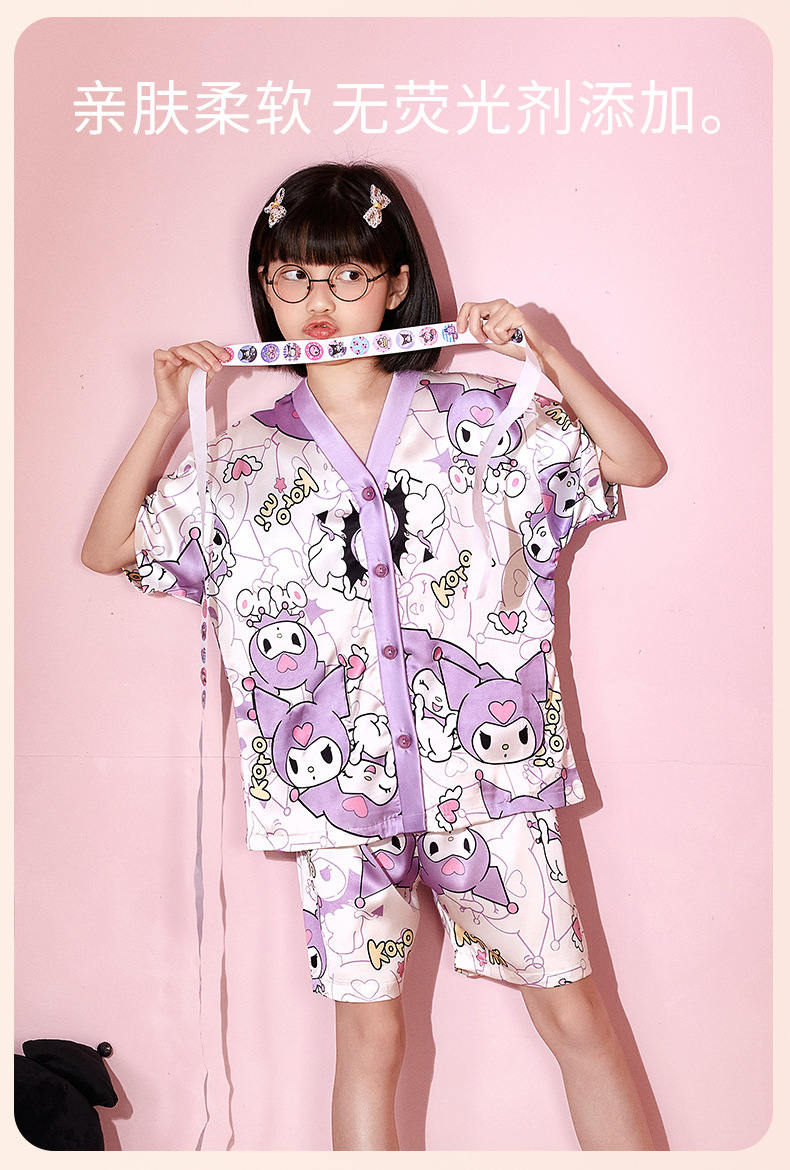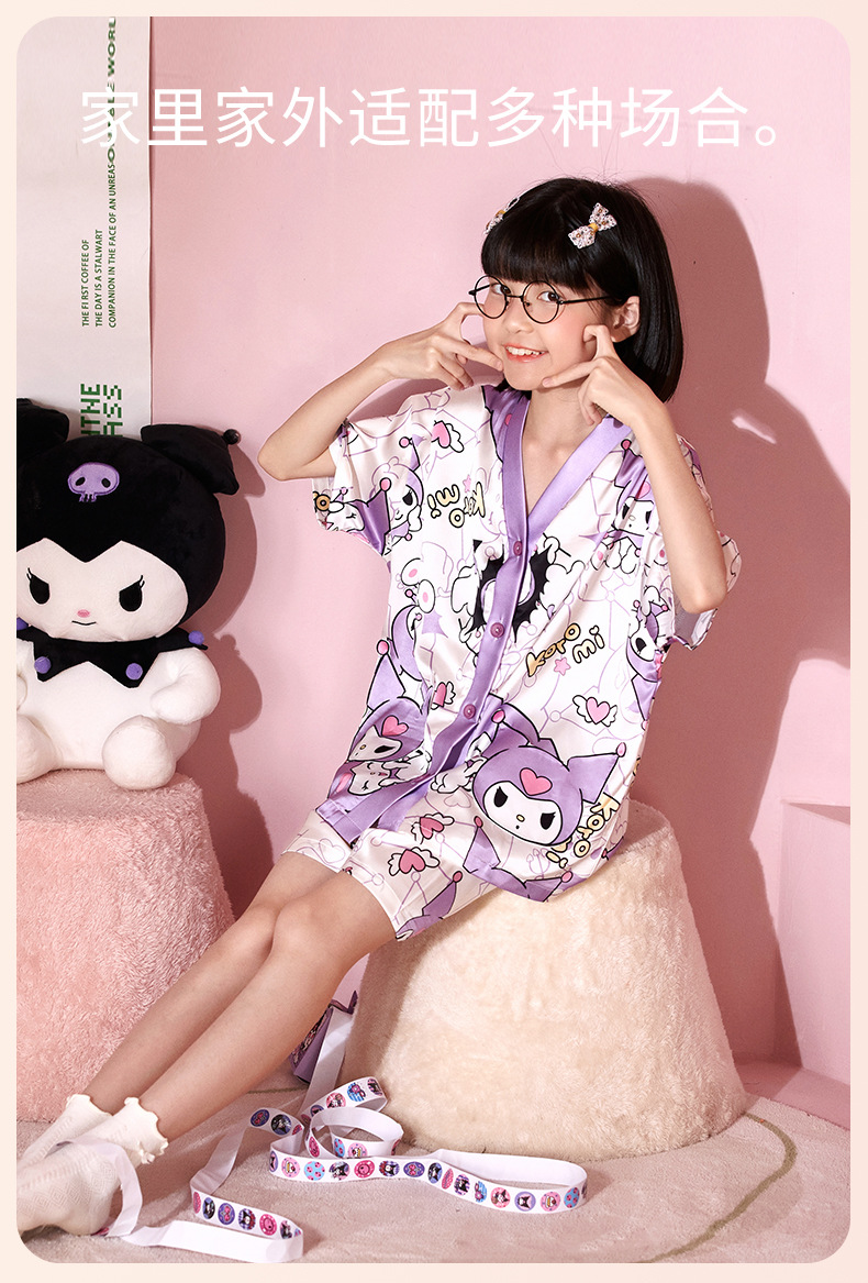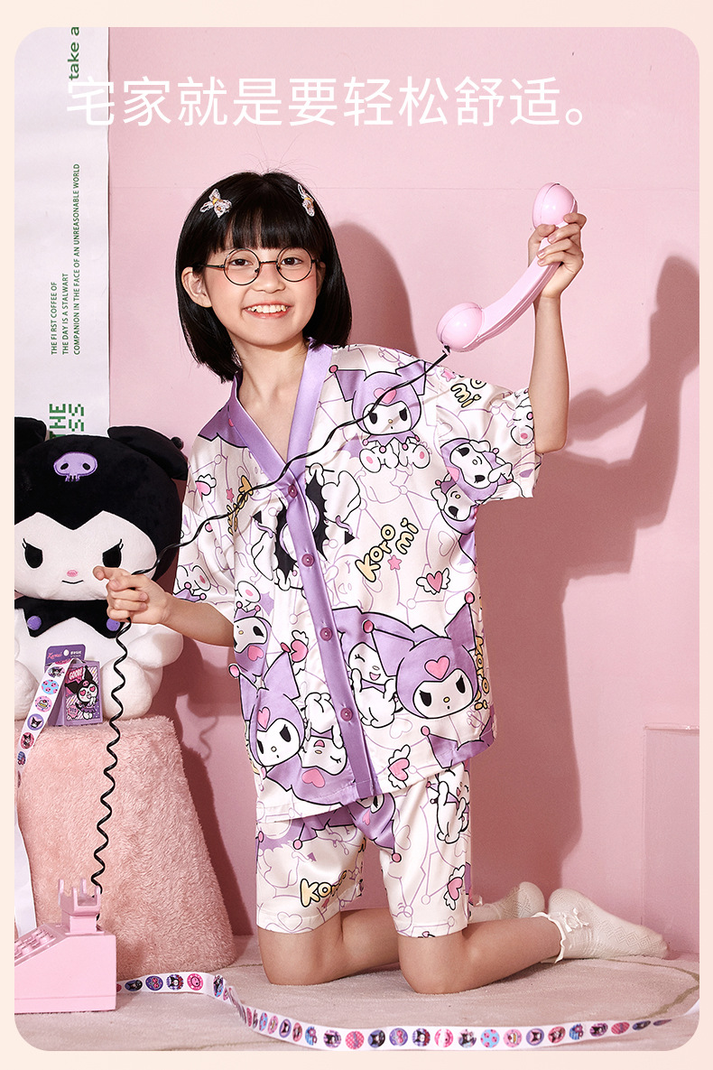 어린이 잠옷 소녀 여름 얇은 여름 아이스 실크 소녀 큰 아이들 실크 홈 옷 2024 새로운 Kulomi