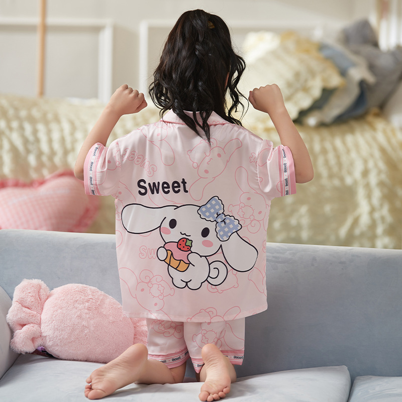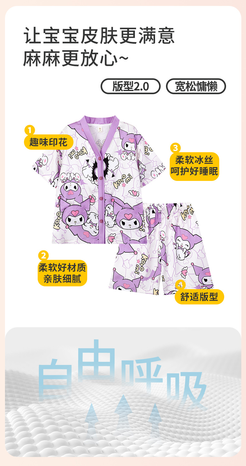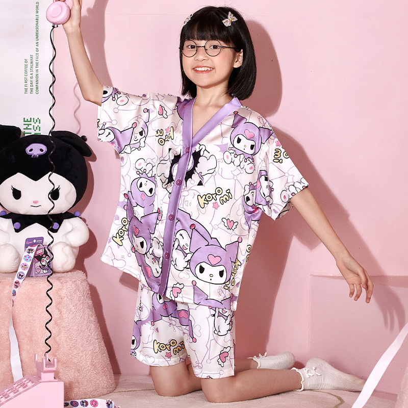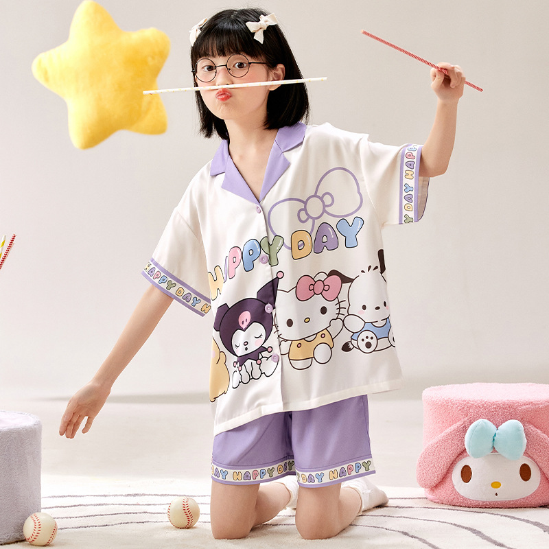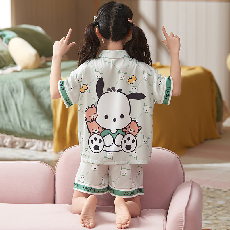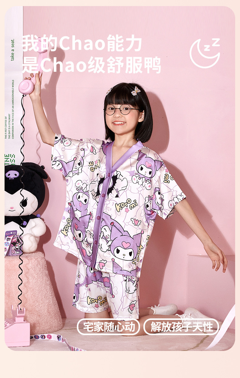 어린이 잠옷 소녀 여름 얇은 여름 아이스 실크 소녀 큰 아이들 실크 홈 옷 2024 새로운 Kulomi