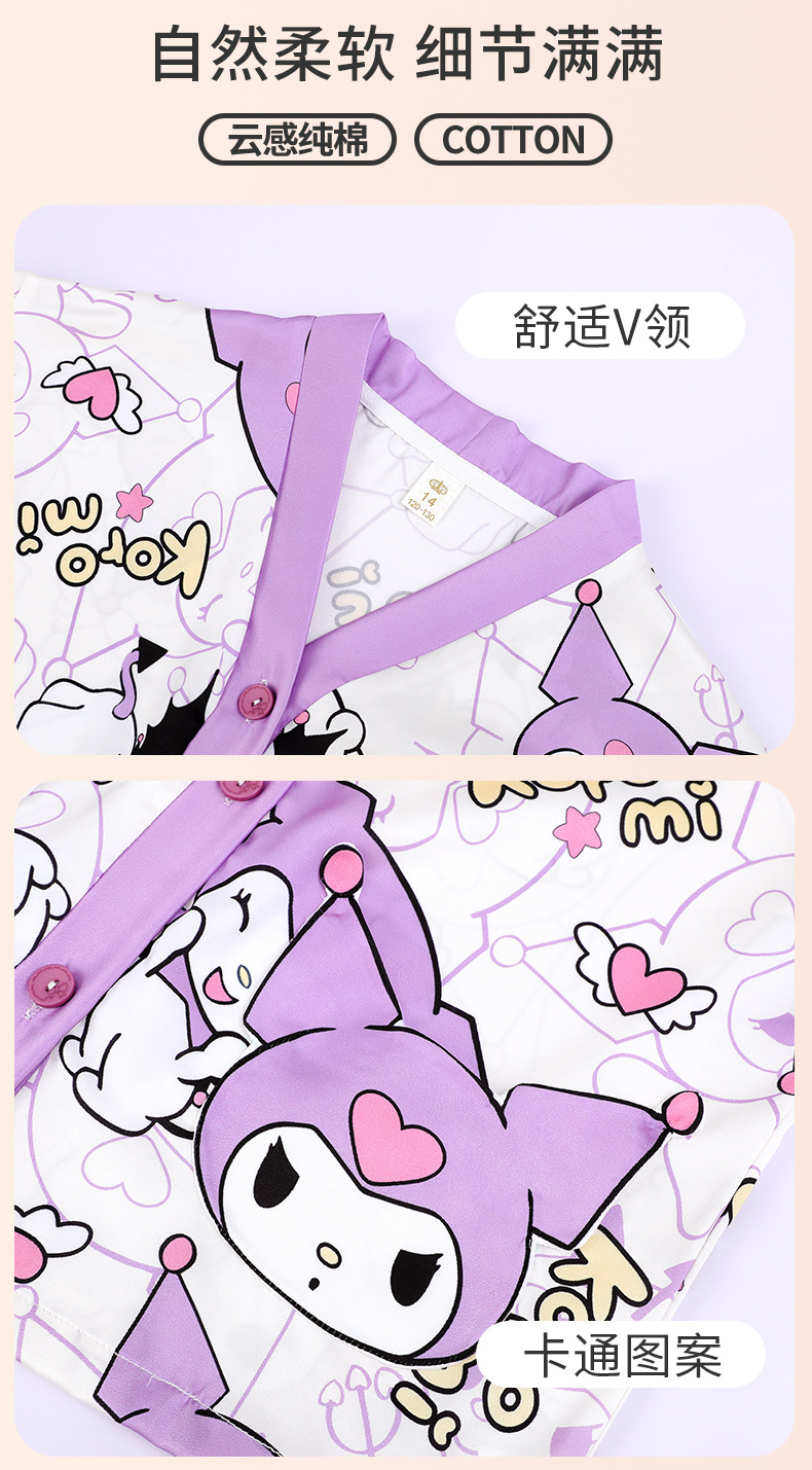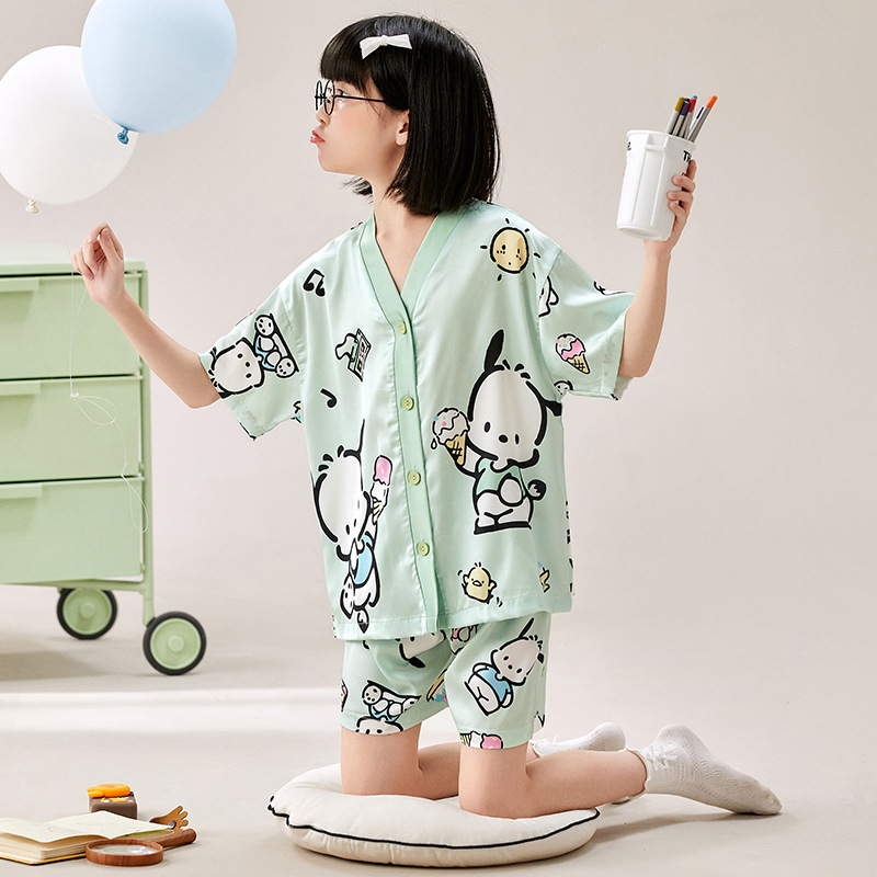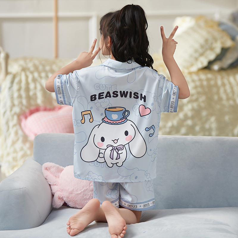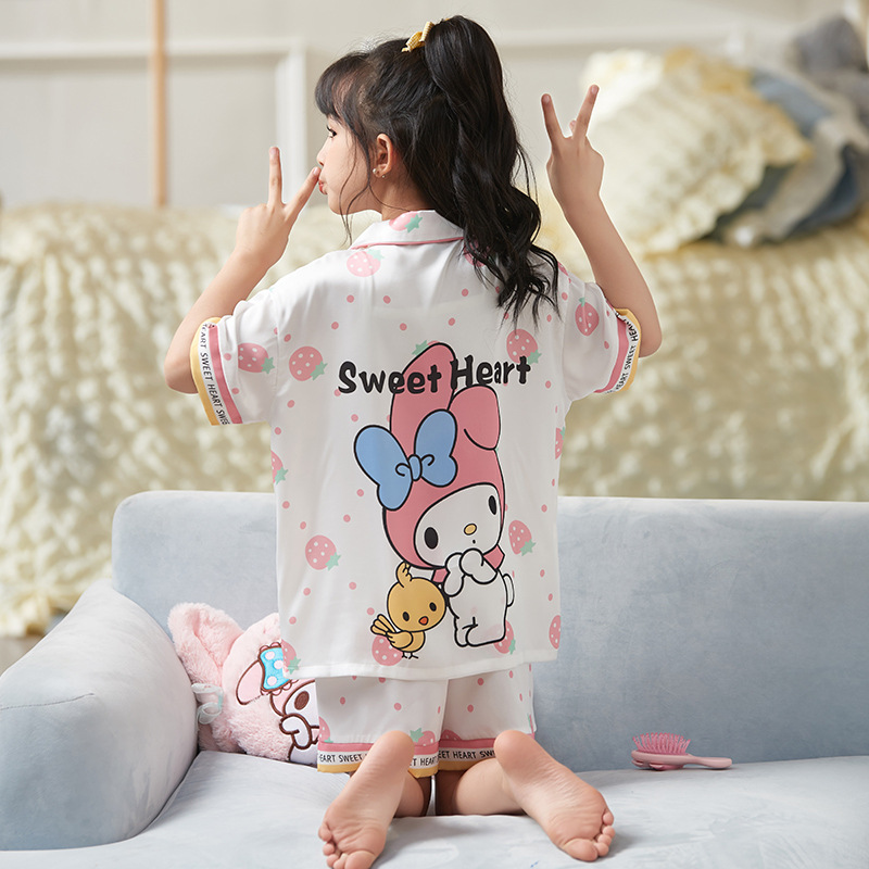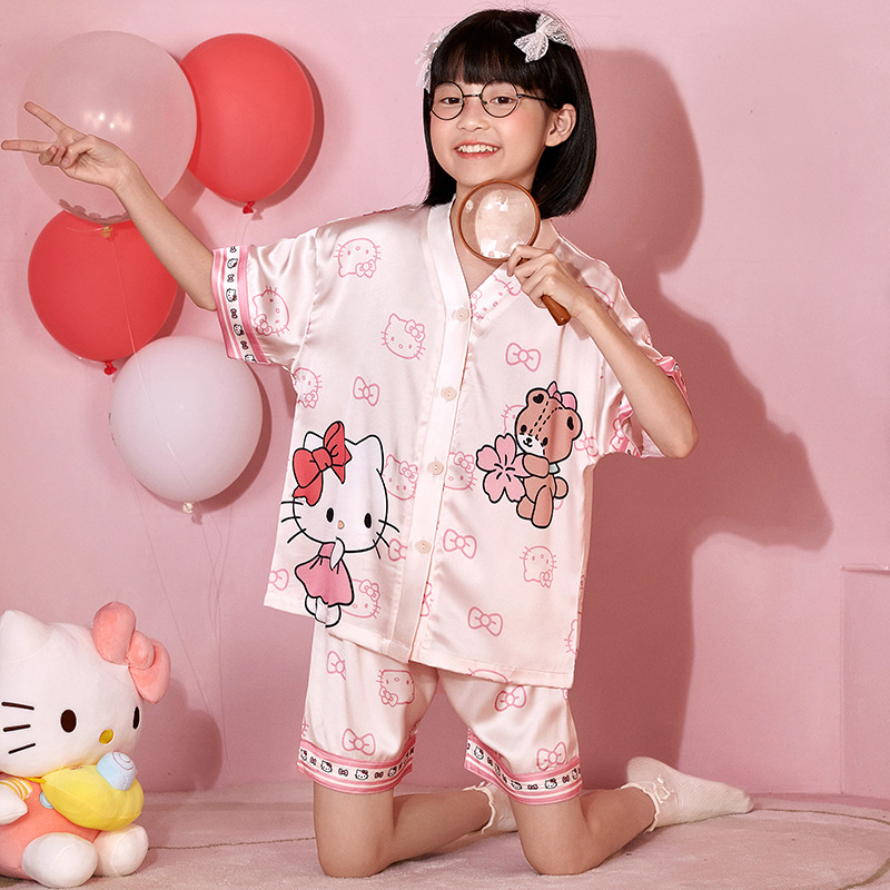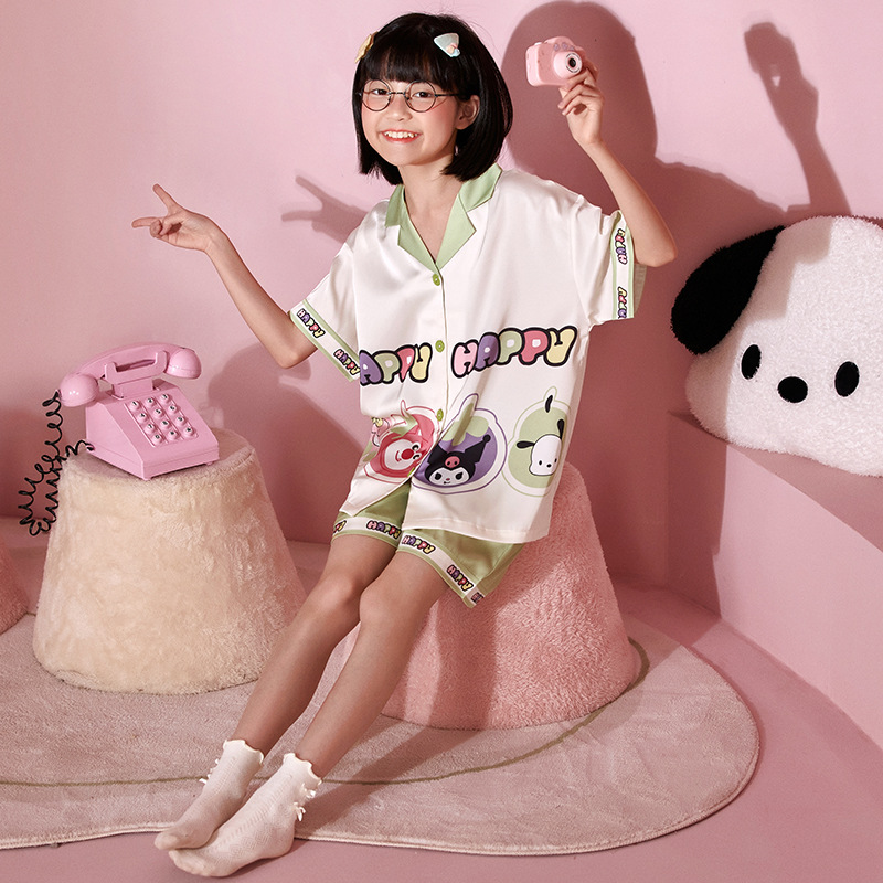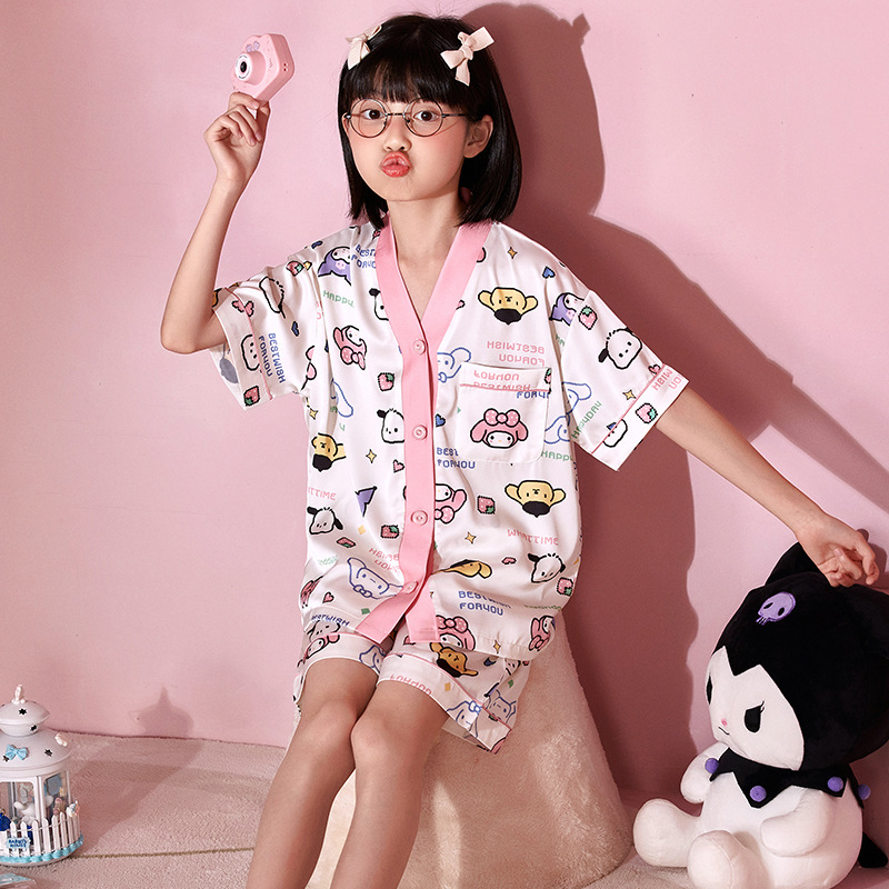 어린이 잠옷 소녀 여름 얇은 여름 아이스 실크 소녀 큰 아이들 실크 홈 옷 2024 새로운 Kulomi