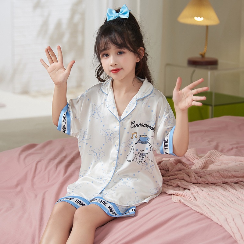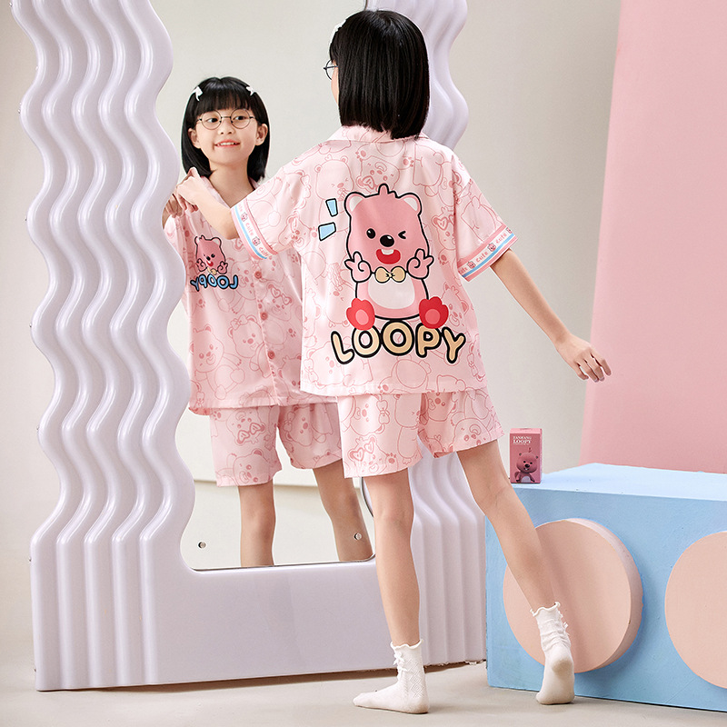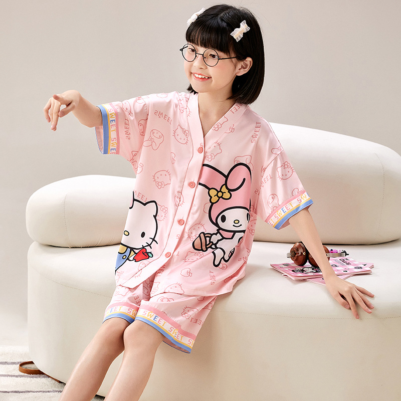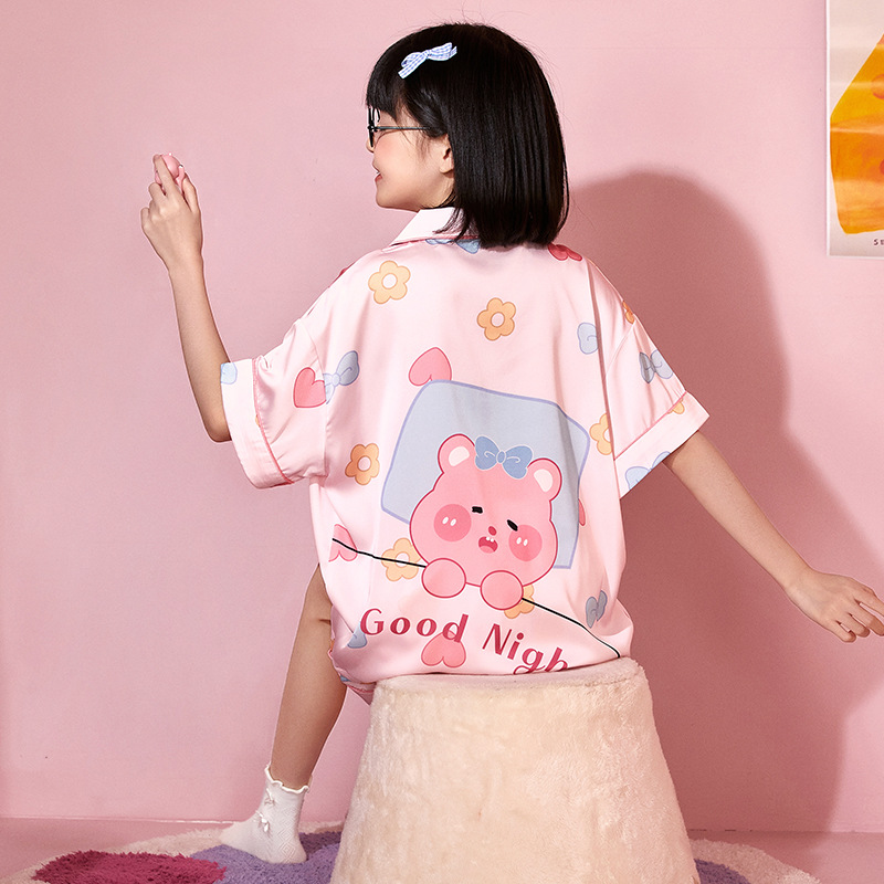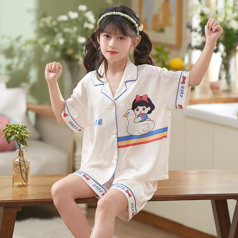 어린이 잠옷 소녀 여름 얇은 여름 아이스 실크 소녀 큰 아이들 실크 홈 옷 2024 새로운 Kulomi스토어 가기