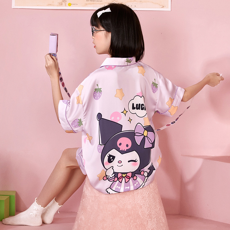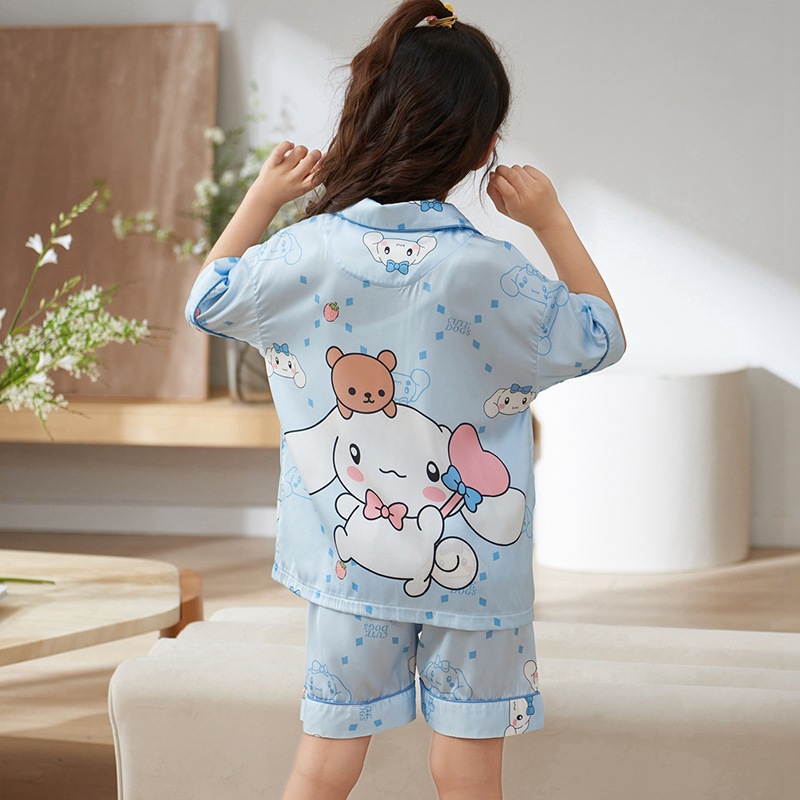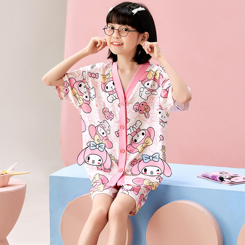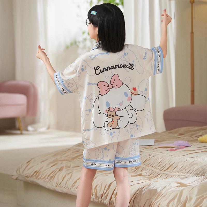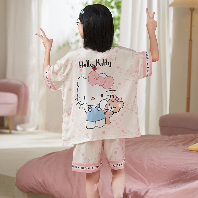 어린이 잠옷 소녀 여름 얇은 여름 아이스 실크 소녀 큰 아이들 실크 홈 옷 2024 새로운 Kulomi스토어 가기