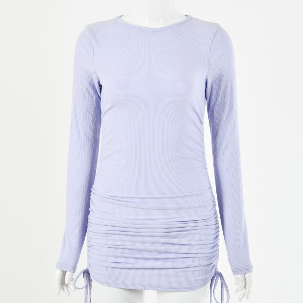 유럽과 미국은 국경을 넘나 드는 섹시한 여성의 2024 가을과 겨울 새로운 원피스 여성 사이드 드로 스트링 긴 소매 라운드 넥 원스텝 스커트