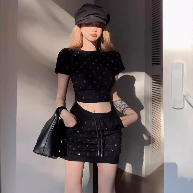 패션 캐주얼 세트 여성 여름 새로운 하이 엔드 서양식 슬리밍 프린트 반팔 티셔츠 반바지 스포츠 투피스 세트