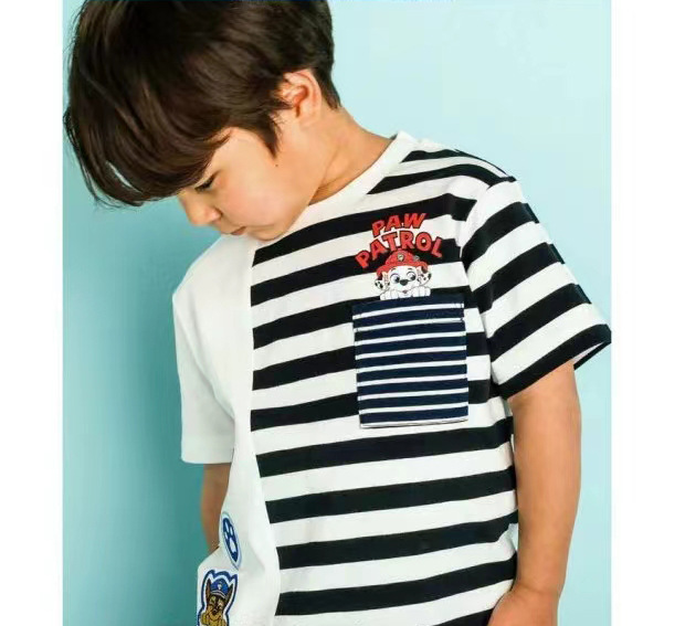 2024 국경 아동 의류 여름 아동 의류 발 순찰 공동 아기 여름 면화 반팔 티셔츠