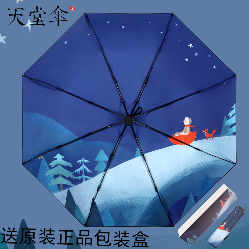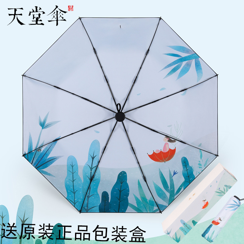 파라다이스 우산 작은 검은 우산 태양 우산 여성의 맑고 비오는 검은 색 고무 이중 목적 접히는 우산 UV 보호 가득 차있는 파라솔