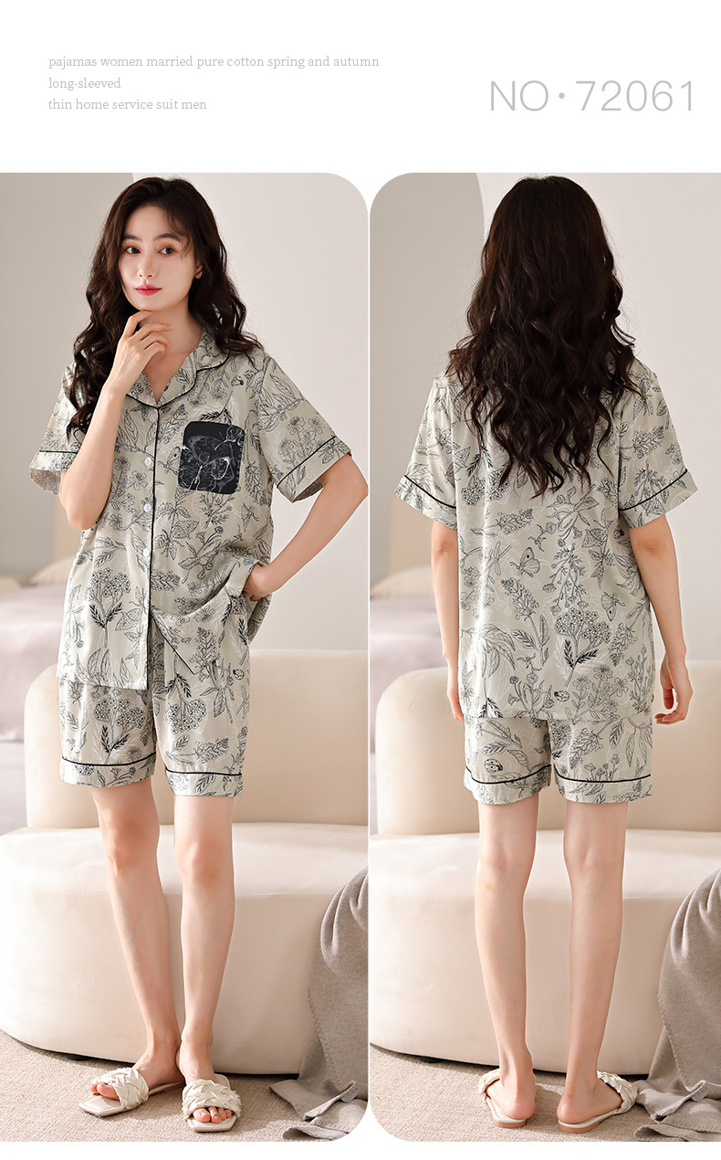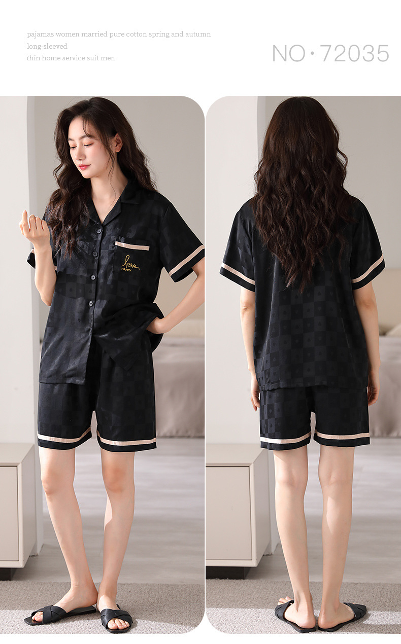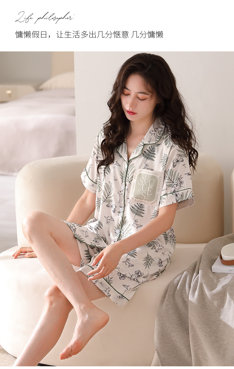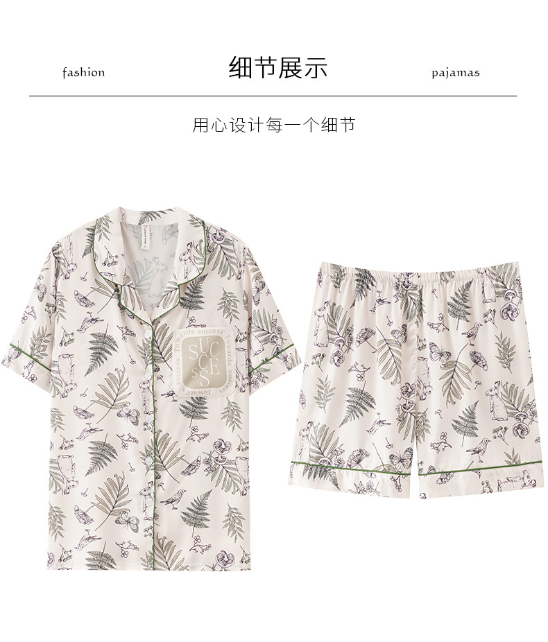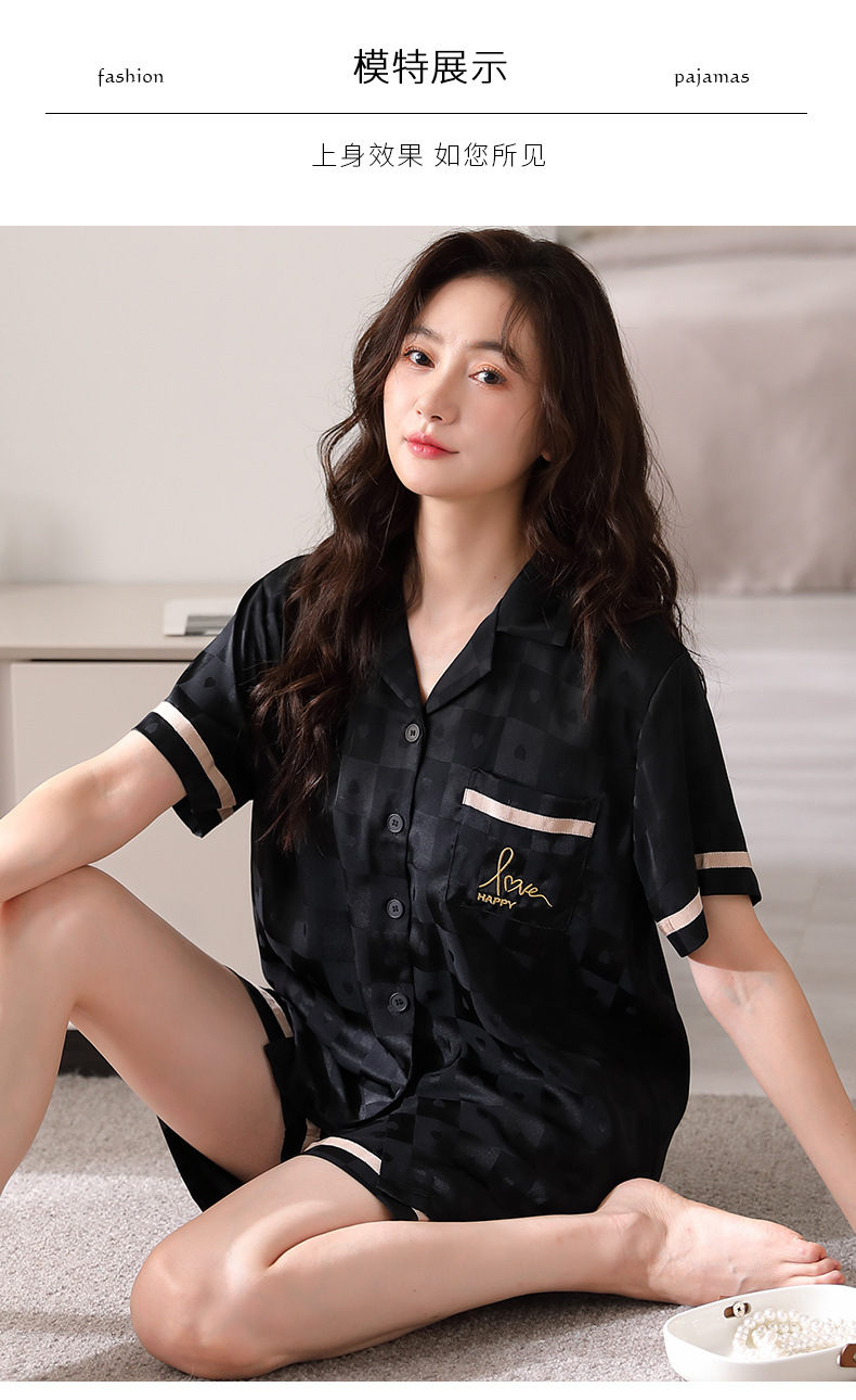 아이스 실크 잠옷 여성 여름 2024 새로운 도착 아웃웨어 짧은 소매 반바지 여름 얇은 여름 홈 의류 가슴 패드스토어 가기