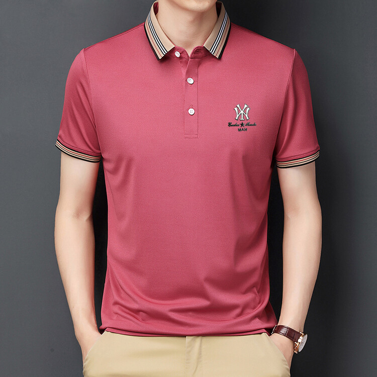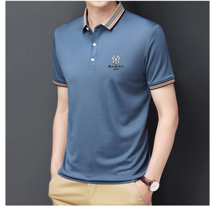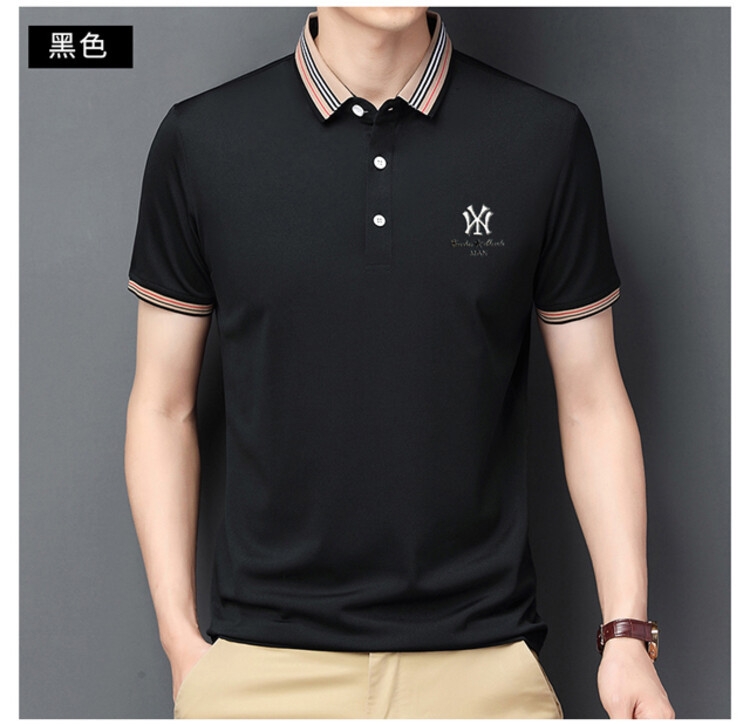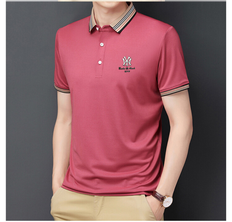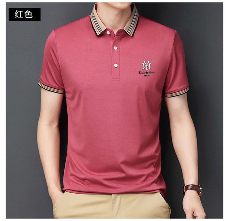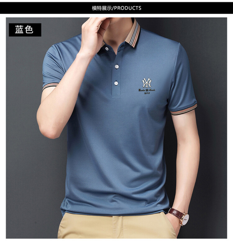 젊은 및 중년 남성 인쇄 반팔 티셔츠 여름 새로운 비즈니스 캐주얼 루즈 탑 아이스 실크 폴로 셔츠 트렌디 남성