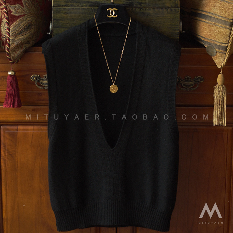 양모 V-Neck 니트 조끼 여성 가을 및 겨울 느슨한 짧은 적층 캐시미어 조끼 민소매 스웨터 웨이스트 코트