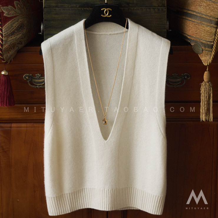 양모 V-Neck 니트 조끼 여성 가을 및 겨울 느슨한 짧은 적층 캐시미어 조끼 민소매 스웨터 웨이스트 코트스토어 가기