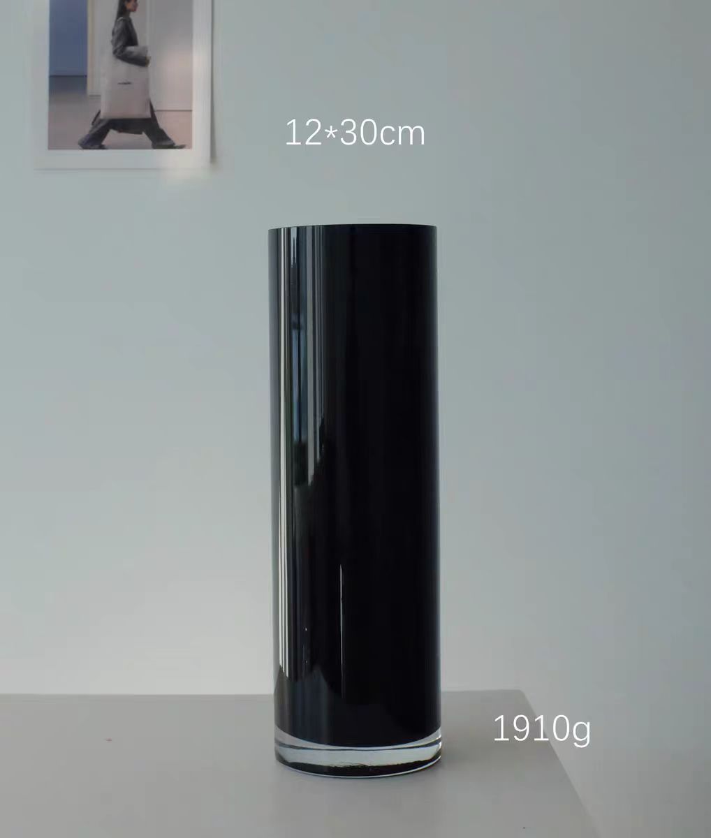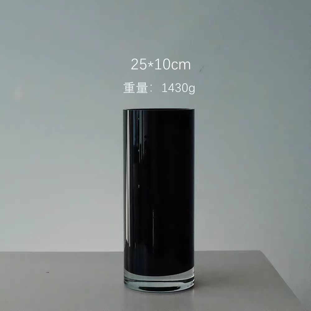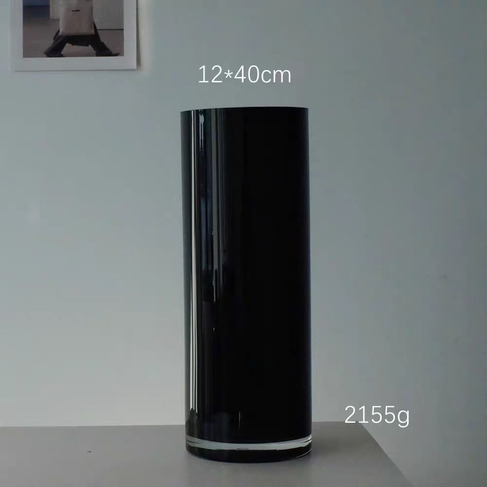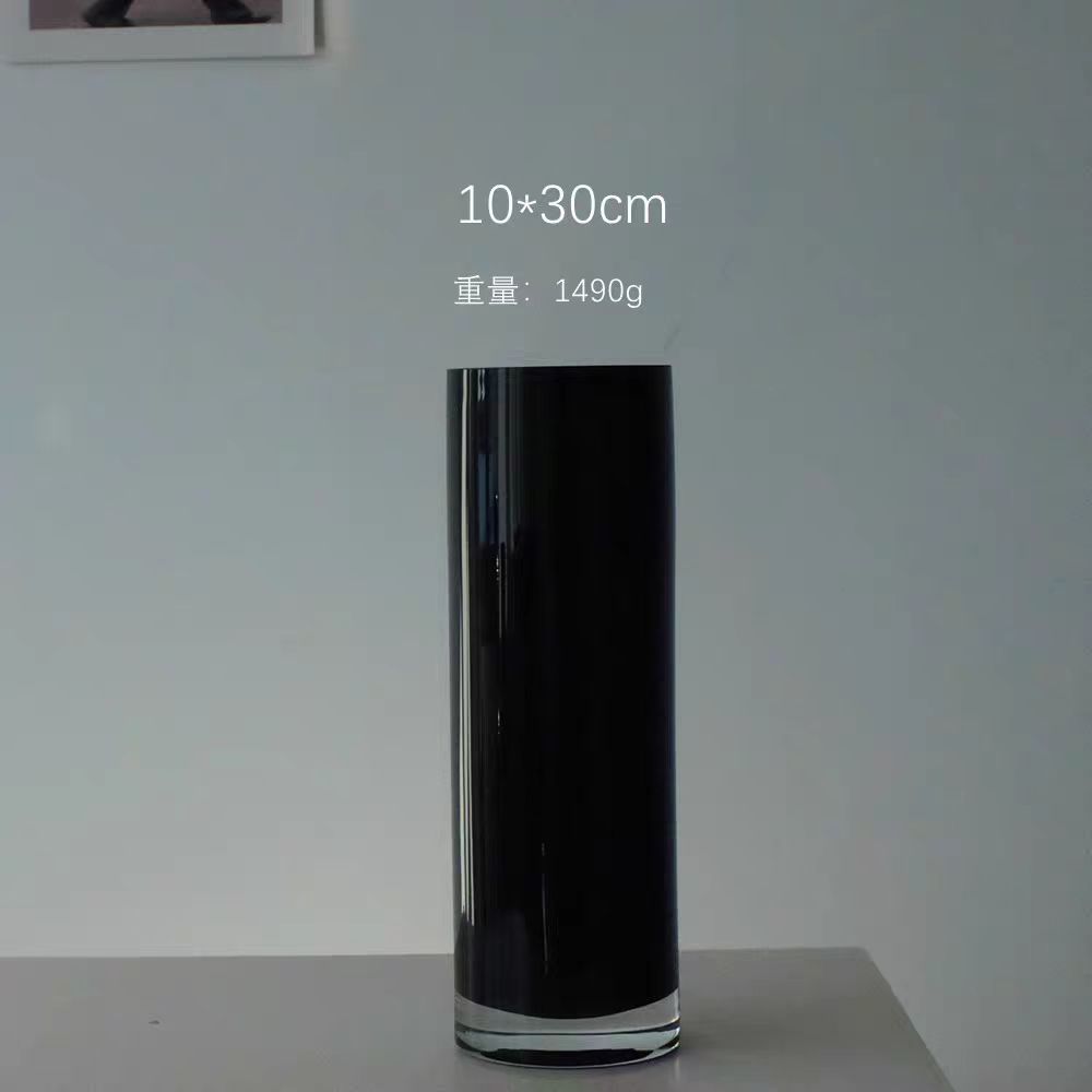 현대 간단한 블랙 스트레이트 유리 꽃병 호텔 로비 장식 웨딩 원통형 데스크탑 수경 꽃병
