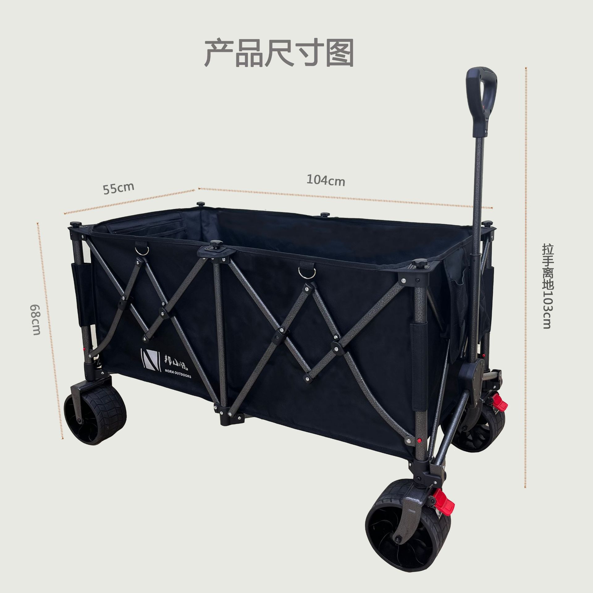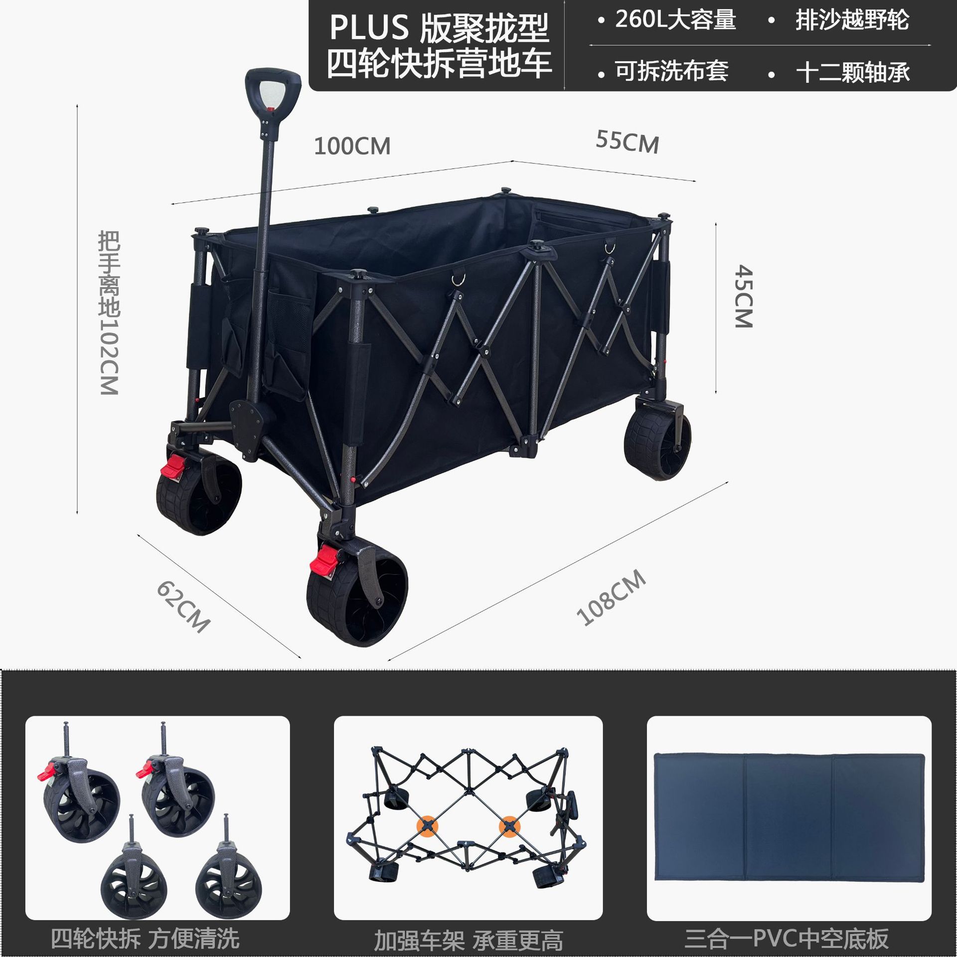 접이식 야외 캠핑카, 캠프용 푸시풀카, 강화된 하단, 고하중, 식료품 쇼핑, 낚시, 이사, 캠핑용스토어 가기