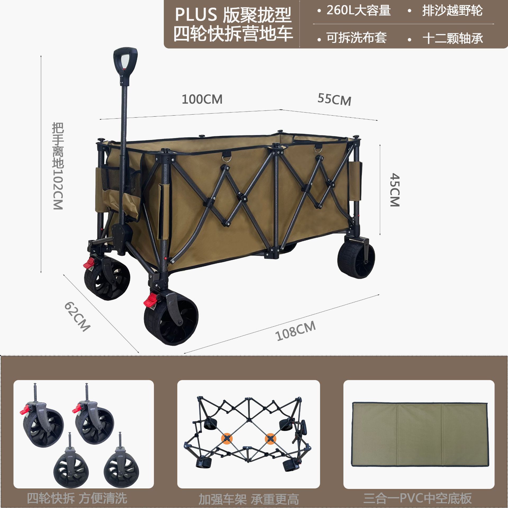 접이식 야외 캠핑카, 캠프용 푸시풀카, 강화된 하단, 고하중, 식료품 쇼핑, 낚시, 이사, 캠핑용