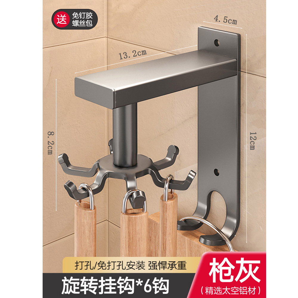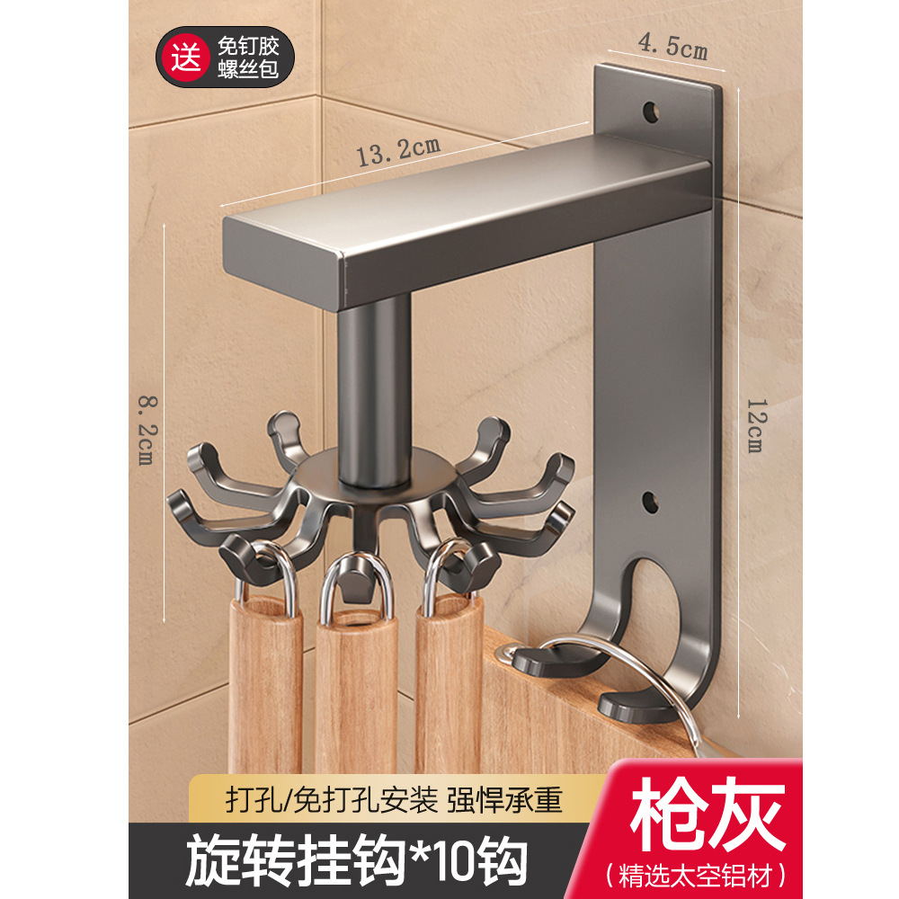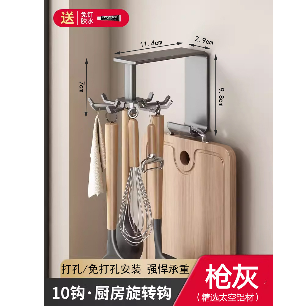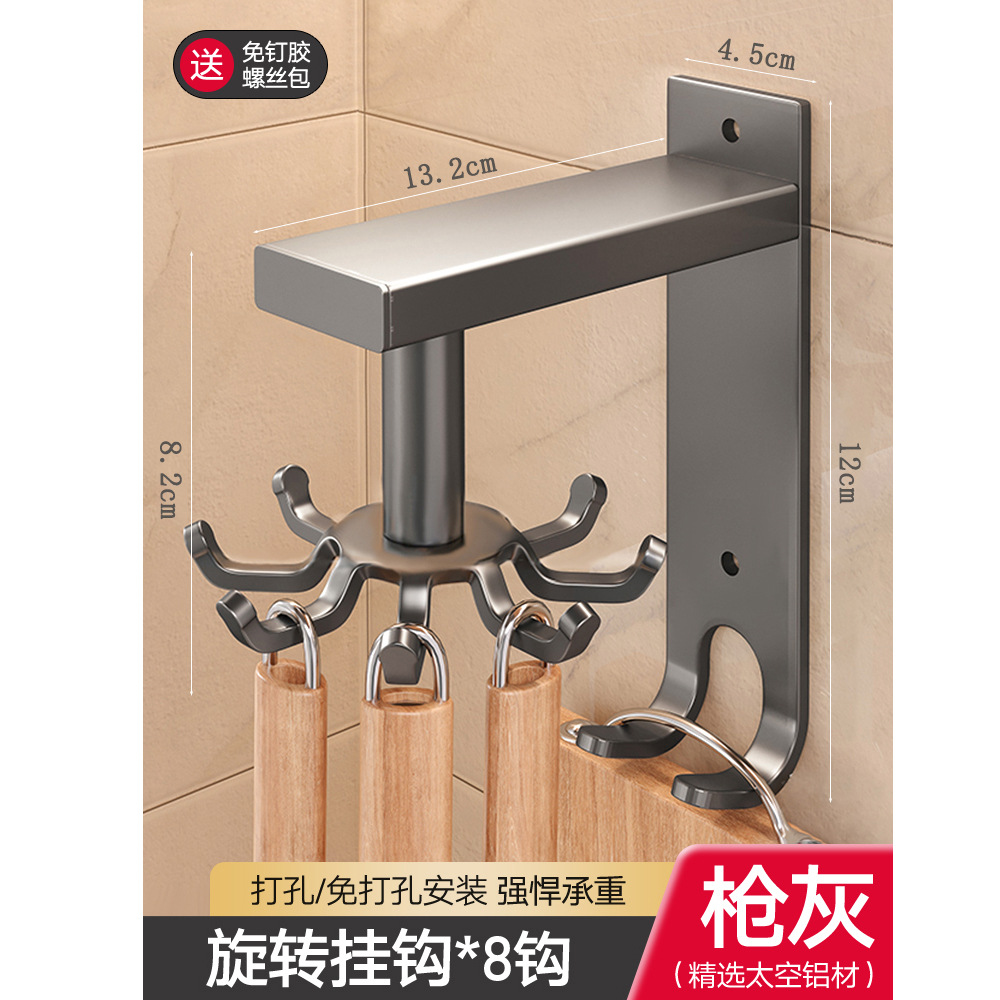 • 구멍을 뚫을 필요가 없습니다: ZS 공간 알루미늄 걸이 회전 고리 8개 후크 - 회색