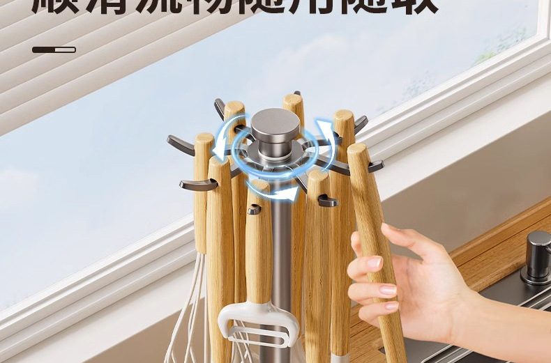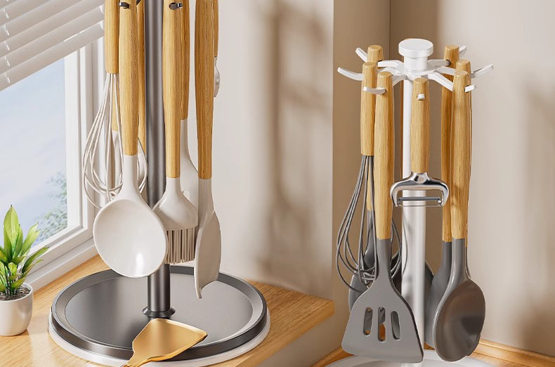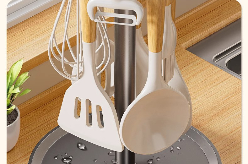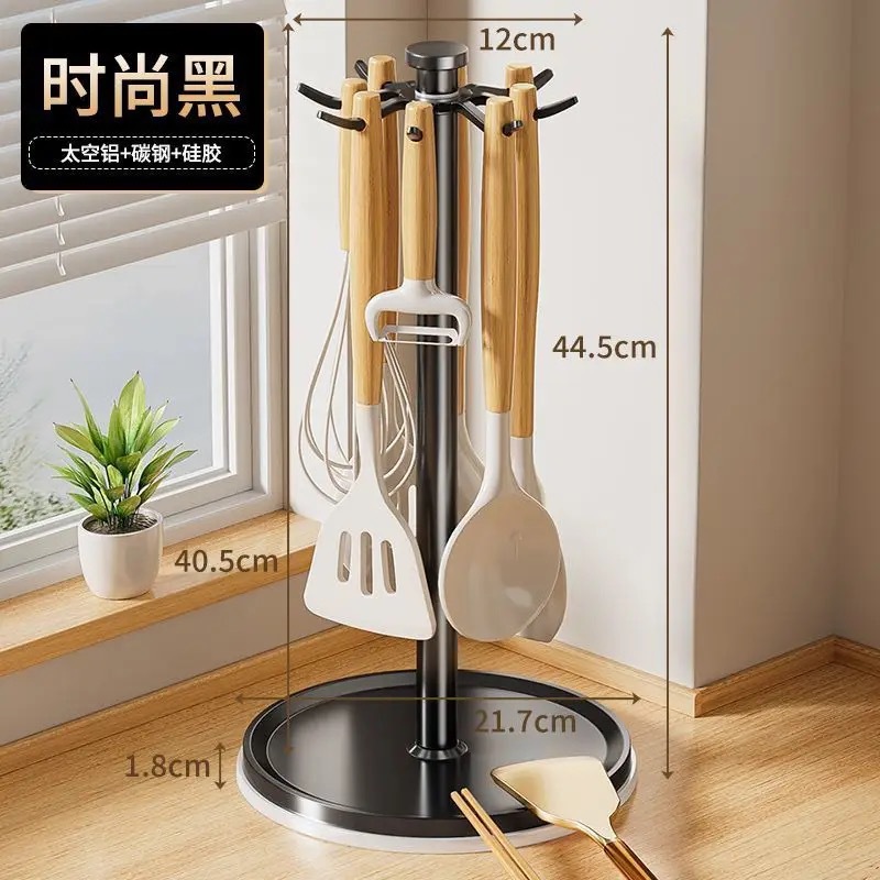 회전하는 냄비 삽 랙 카운터 탑 가정용 주방 후크 보관 랙 교수형 숟가락 삽 홀더 수프 스푼 주방용품 보관 랙