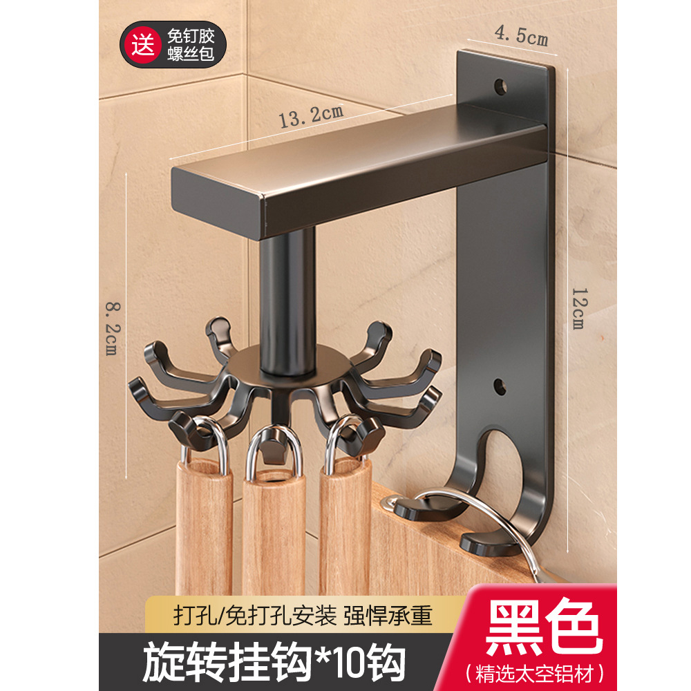 • 펀치 프리: ZS 공간 알루미늄 벽 후크 10 후크 블랙