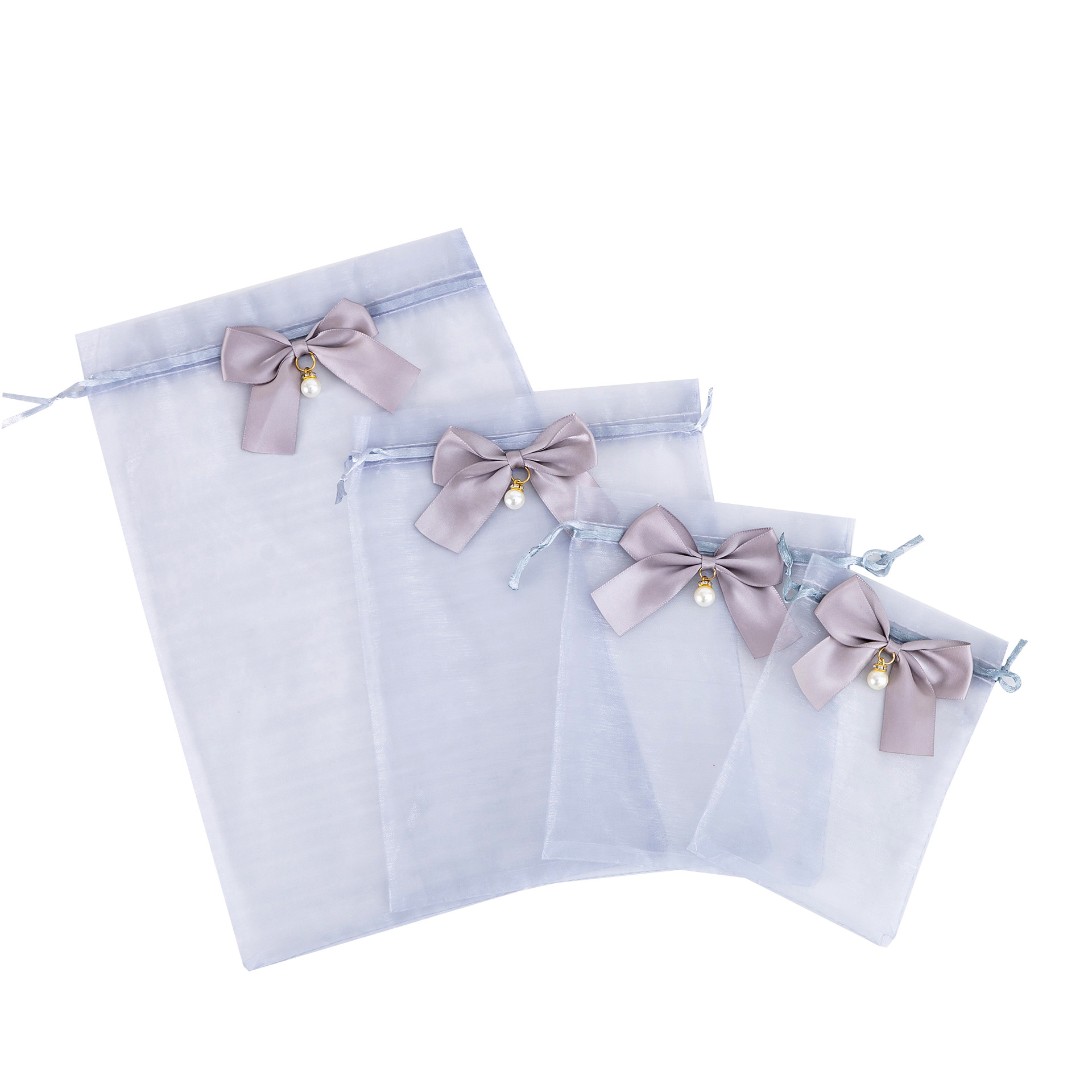 스팟 공급 회색 활 투명 메쉬 가방 저장 가방 organza 선물 가방