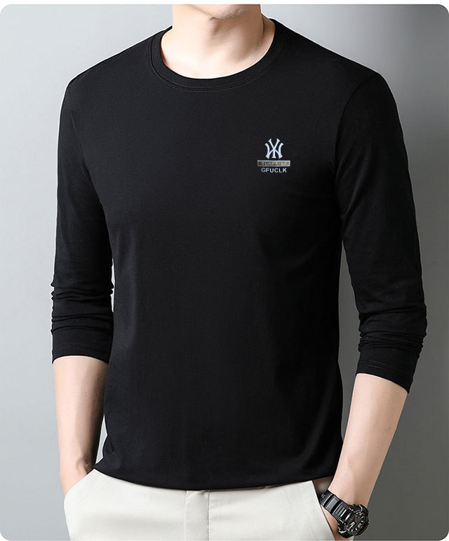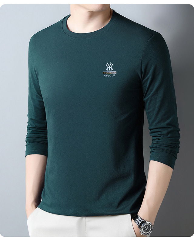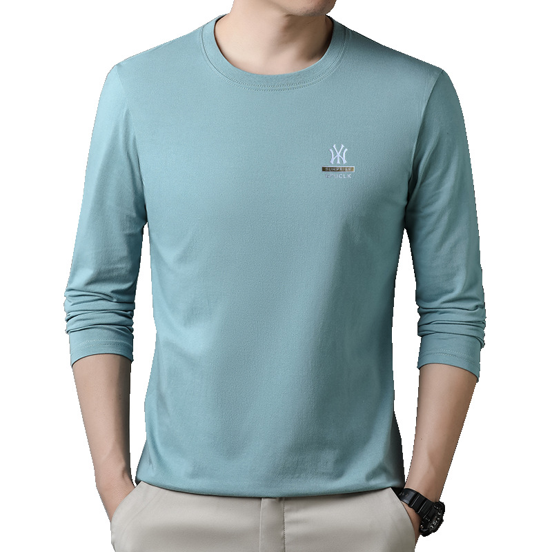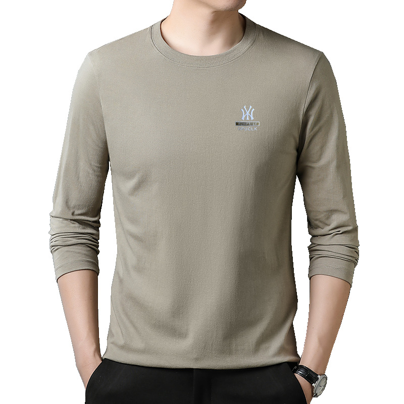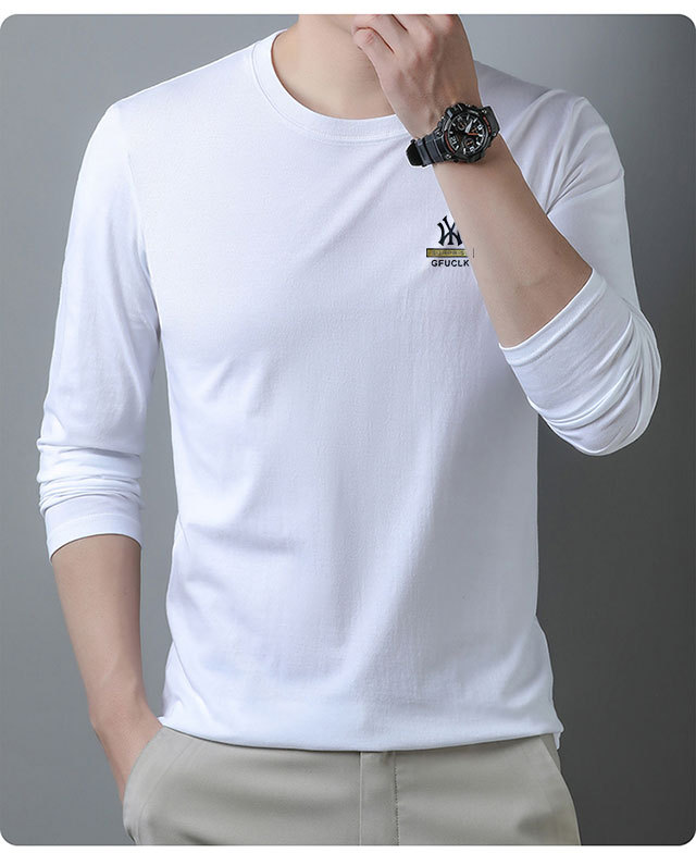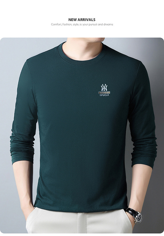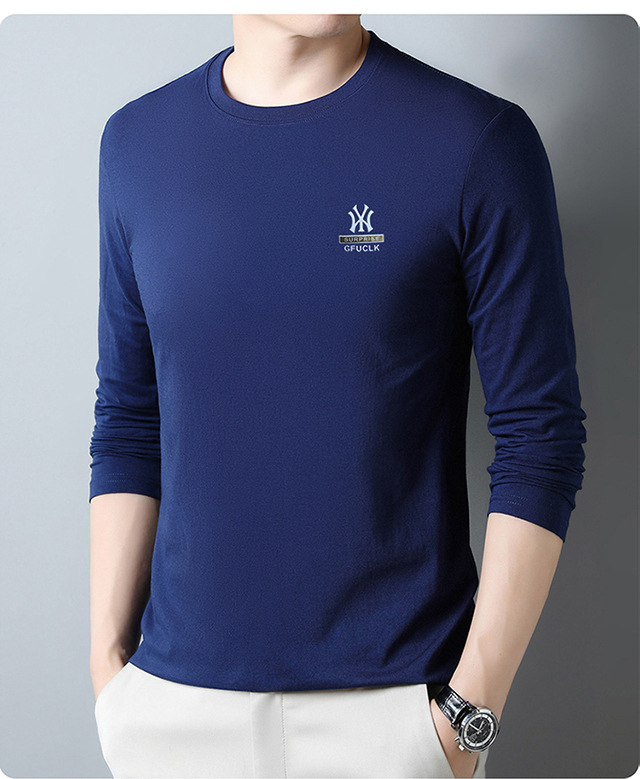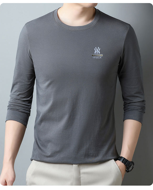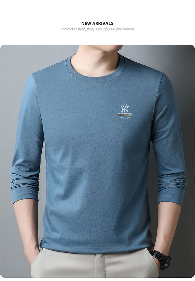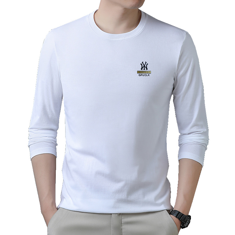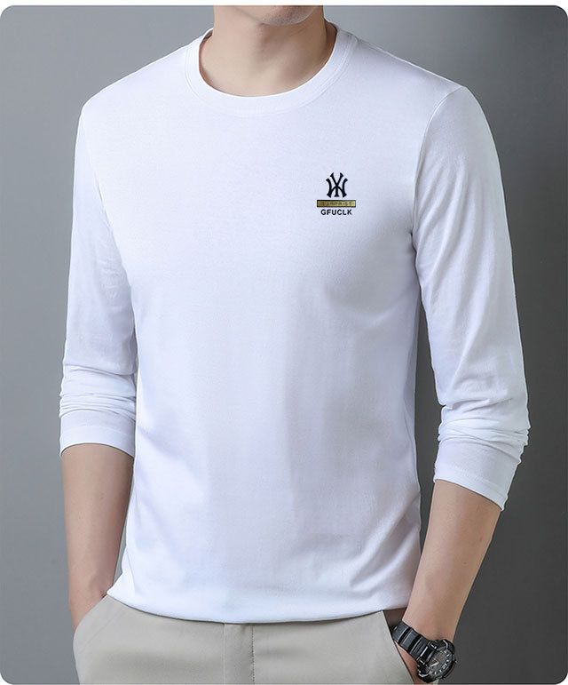 봄과 가을 뉴 코튼 롱 슬리브 남성용 코튼 중년 및 젊은 캐주얼 간단한 남성베이스 셔츠 티셔츠