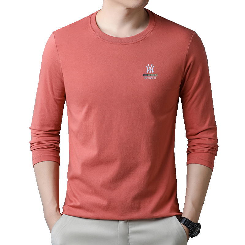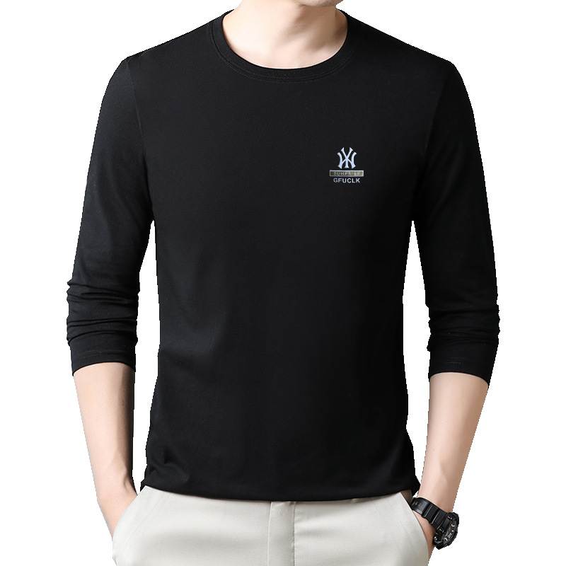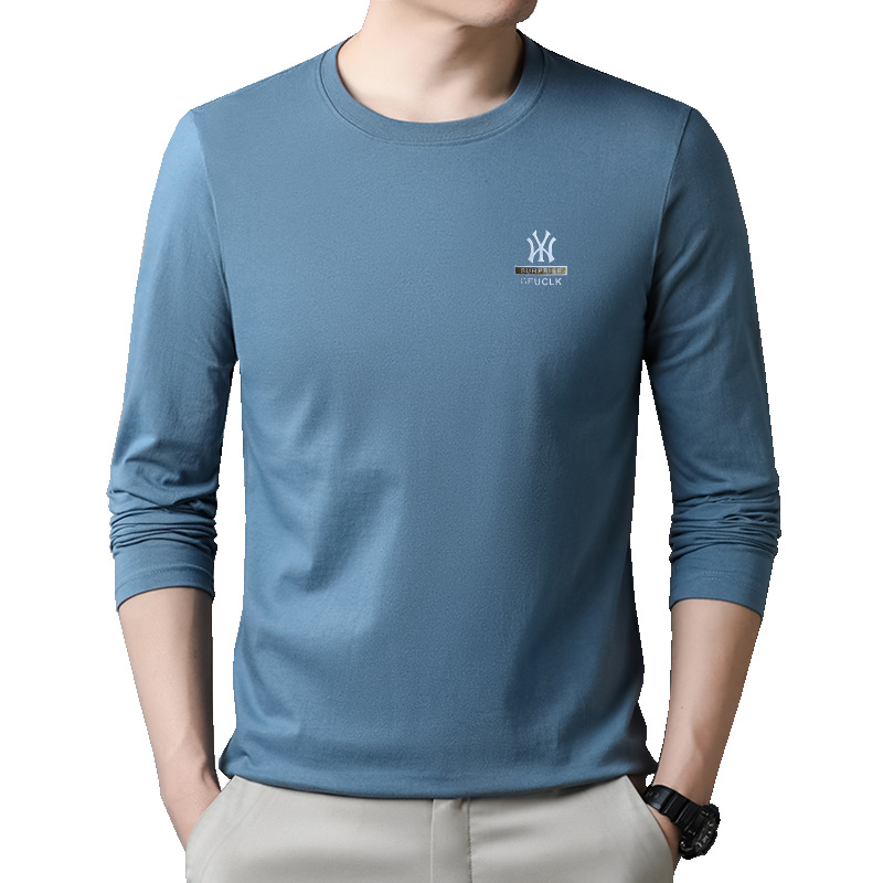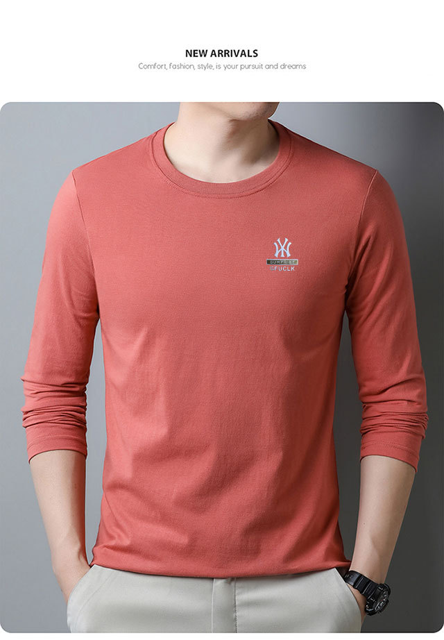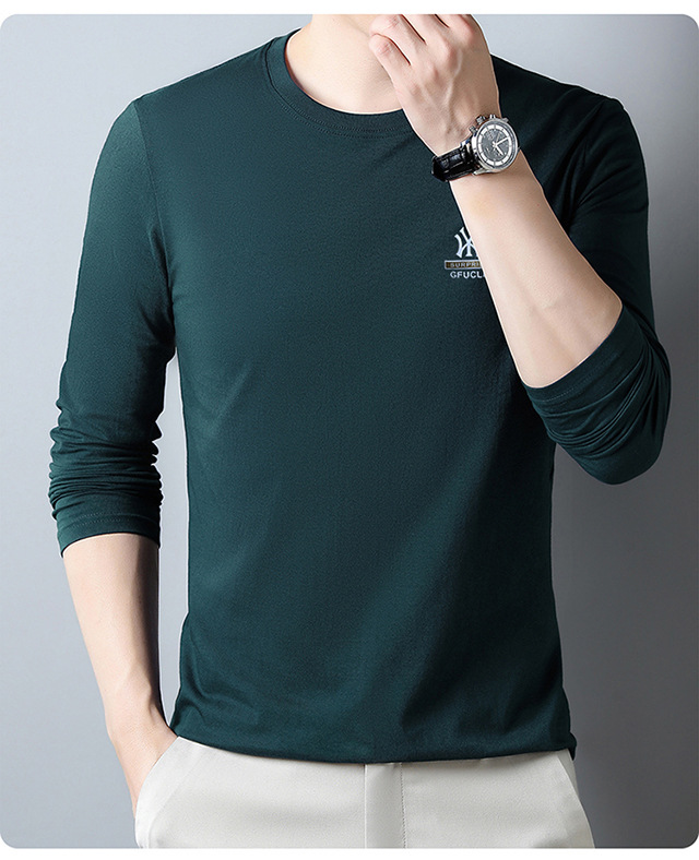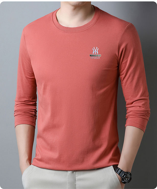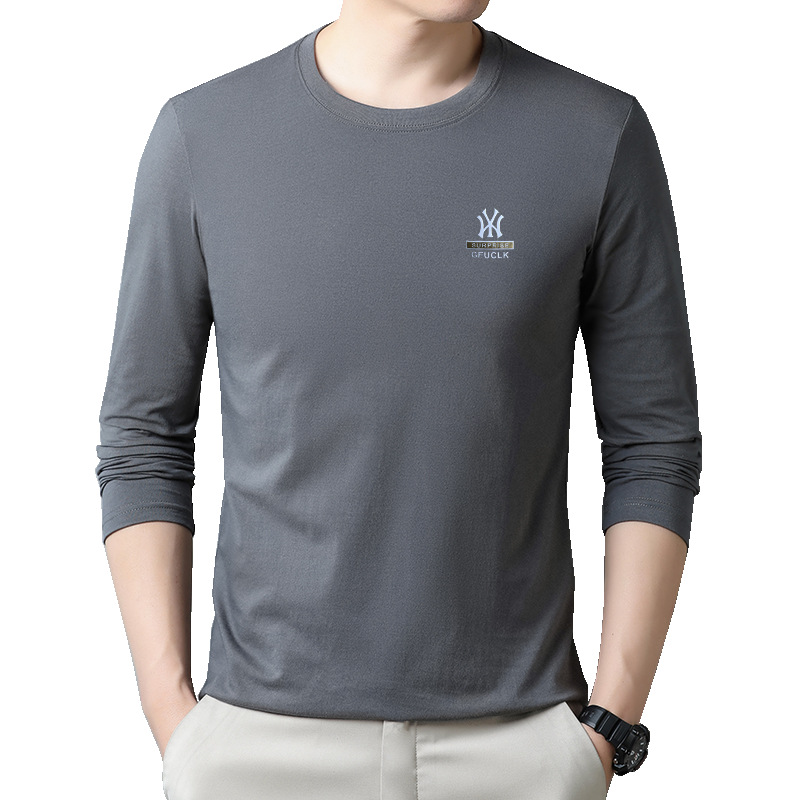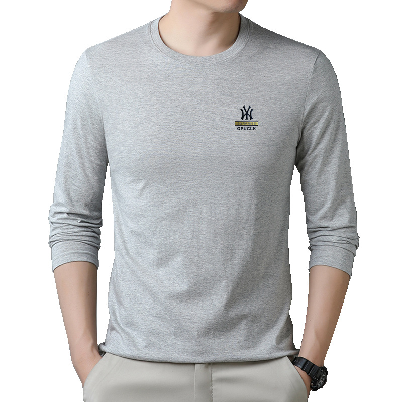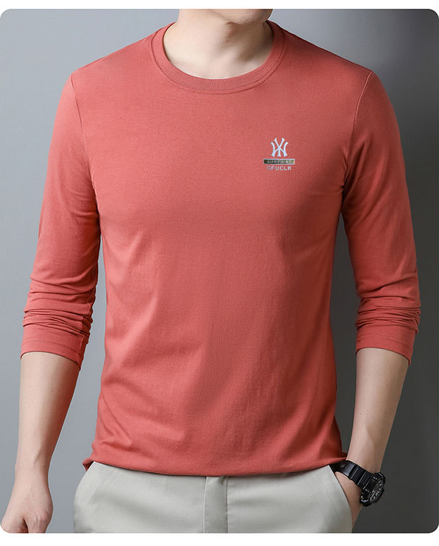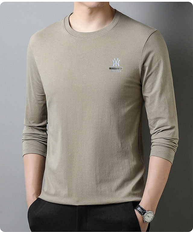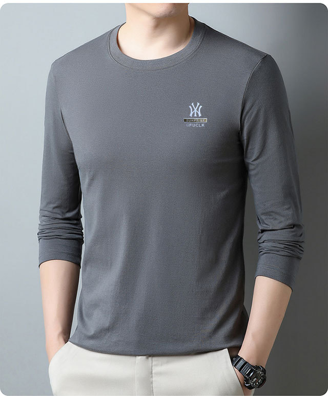 봄과 가을 뉴 코튼 롱 슬리브 남성용 코튼 중년 및 젊은 캐주얼 간단한 남성베이스 셔츠 티셔츠