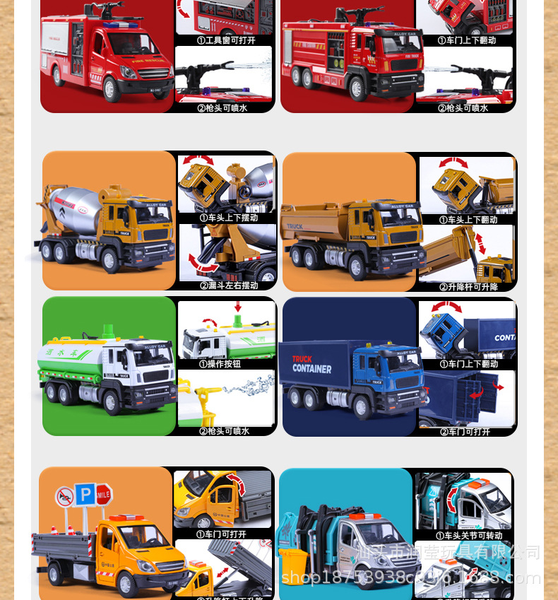 어린이 합금 자동차 장난감 소년 음향 광학 힘 공학 시뮬레이션 소방차 모델 장식품 선물 도매스토어 가기