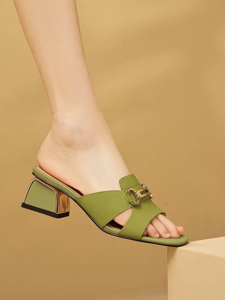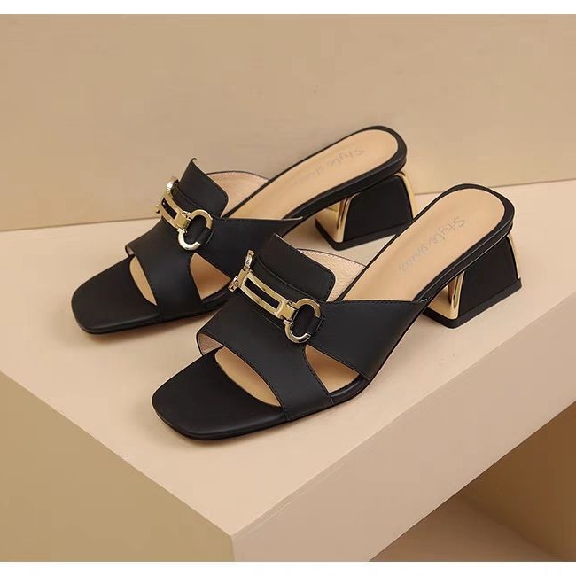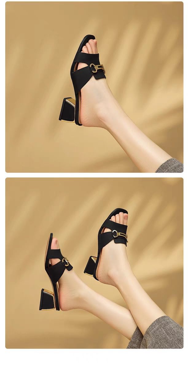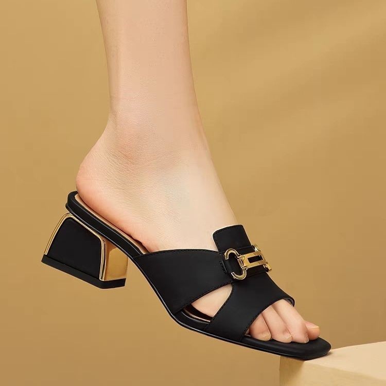 2024 새로운 여름 프랑스 스타일 이브닝 스타일 슬리퍼 샌들 여성을위한 여름 외부 착용 요정 하이힐 샌들스토어 가기