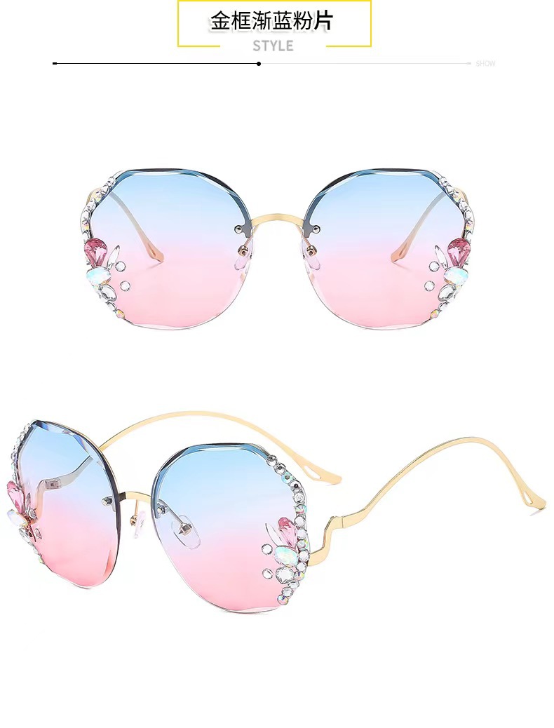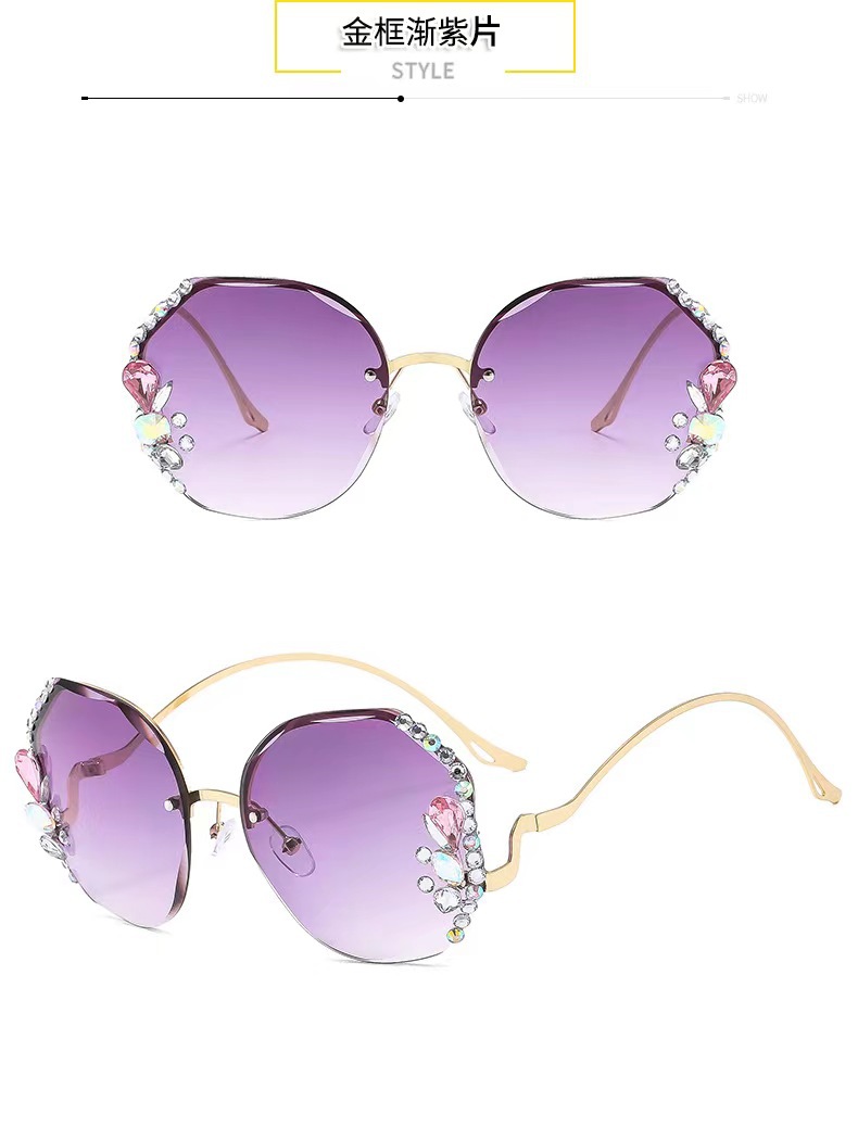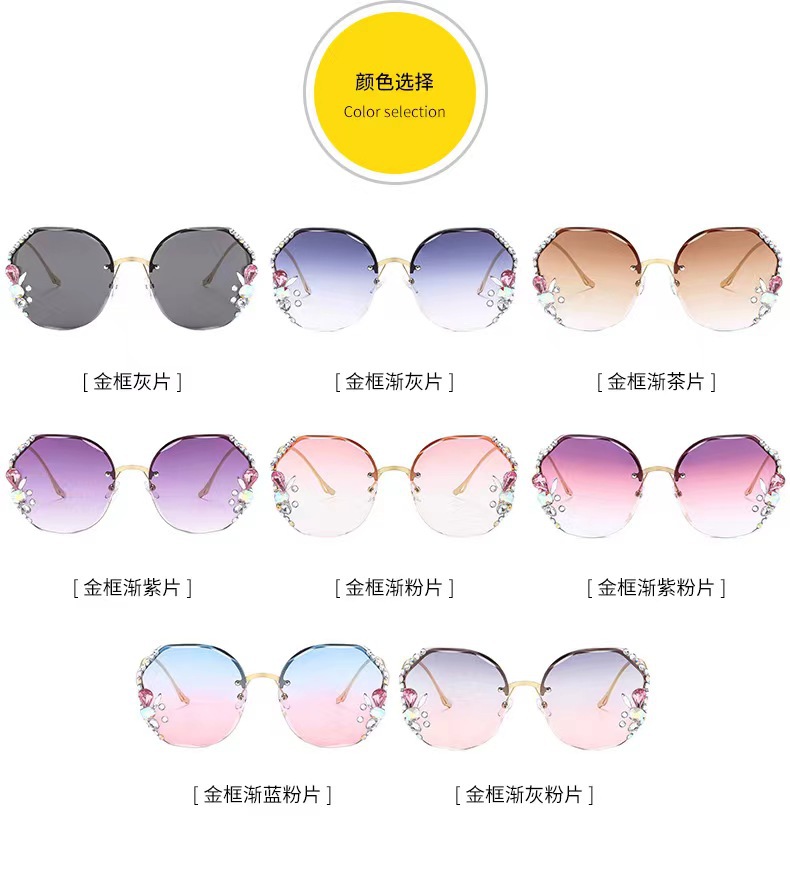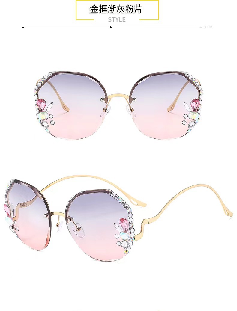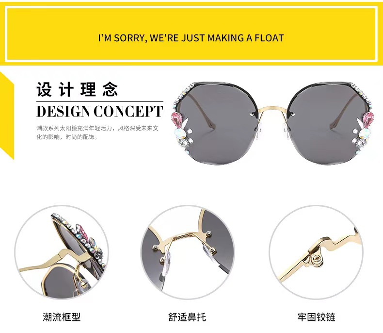2024 국경 새로운 도착 프레임리스 손질 선글라스 여성 하이 엔드 패션 선글라스 사이버 유명 다이아몬드가 박힌 맞춤형 선글라스스토어 가기