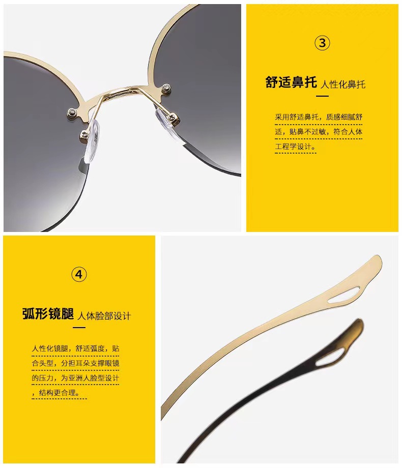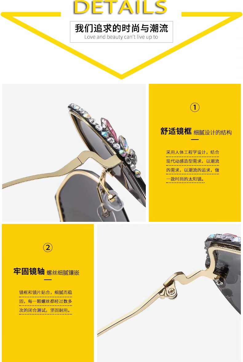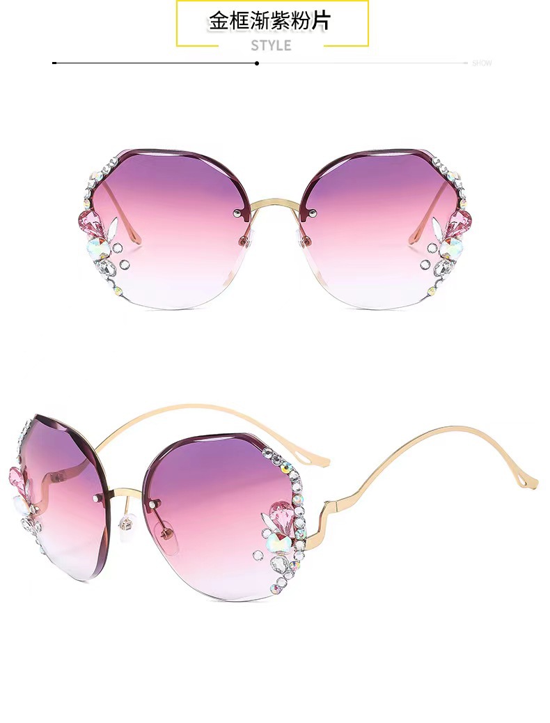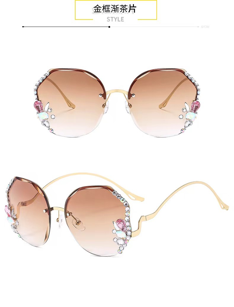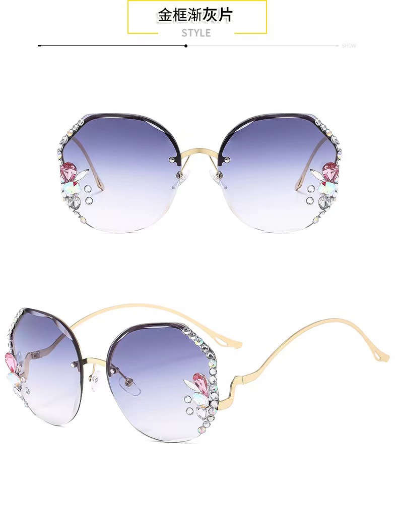 2024 국경 새로운 도착 프레임리스 손질 선글라스 여성 하이 엔드 패션 선글라스 사이버 유명 다이아몬드가 박힌 맞춤형 선글라스스토어 가기