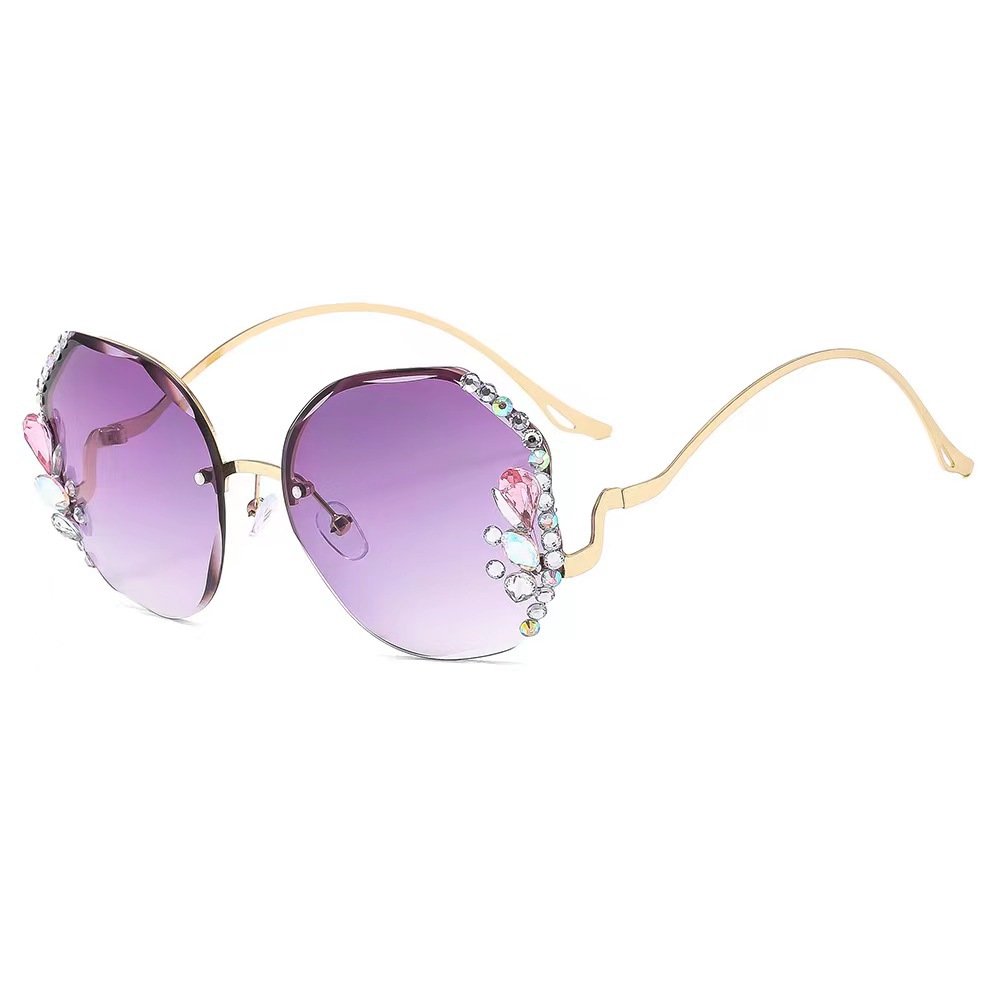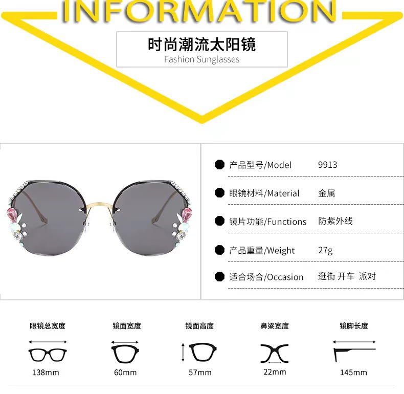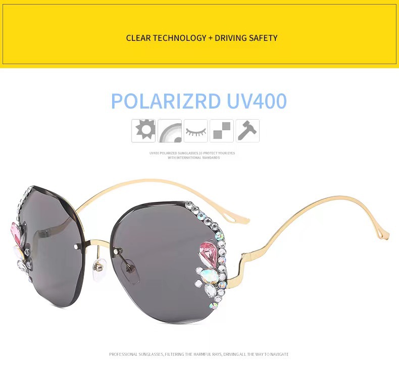 2024 국경 새로운 도착 프레임리스 손질 선글라스 여성 하이 엔드 패션 선글라스 사이버 유명 다이아몬드가 박힌 맞춤형 선글라스