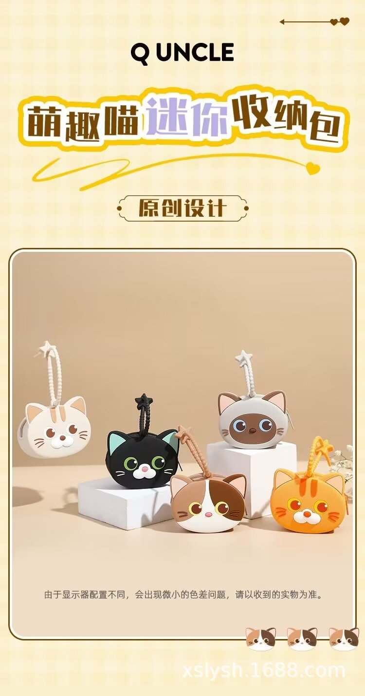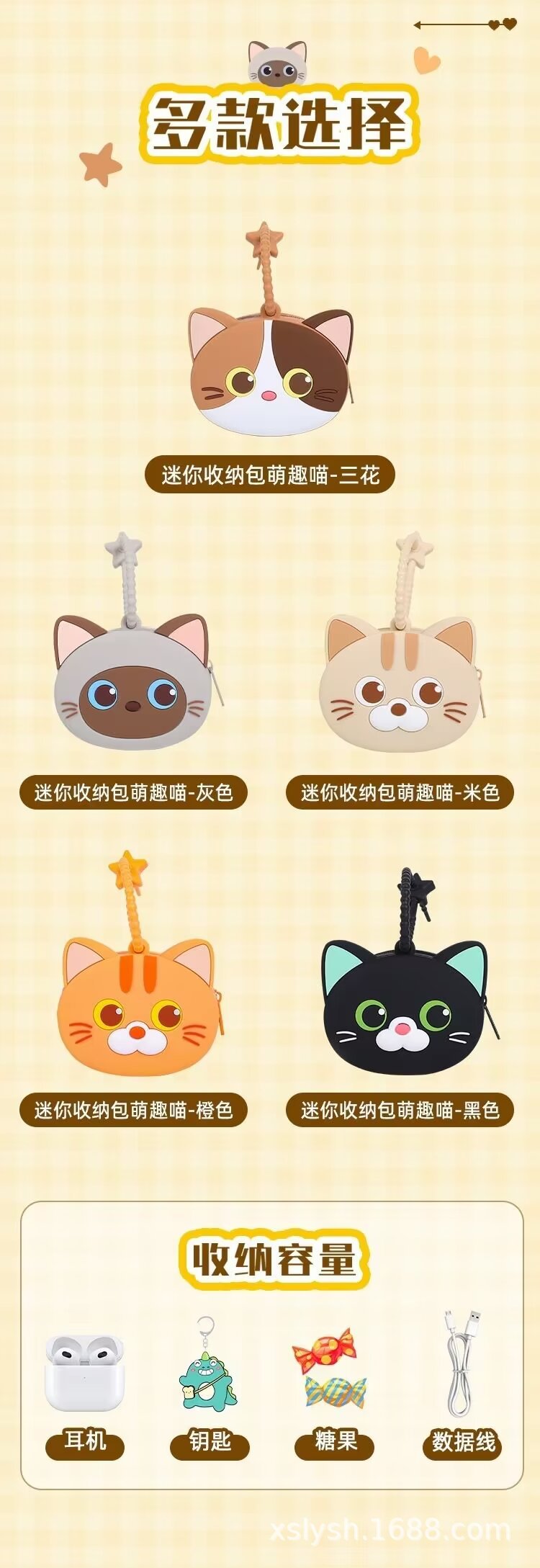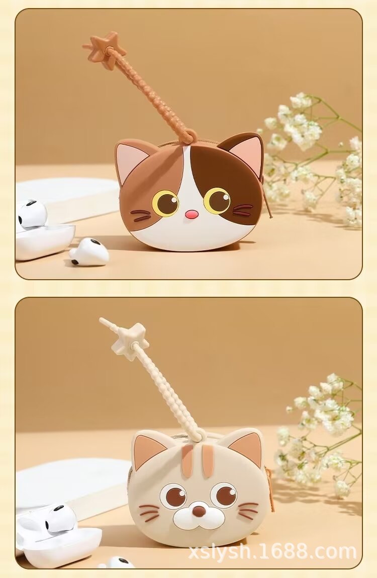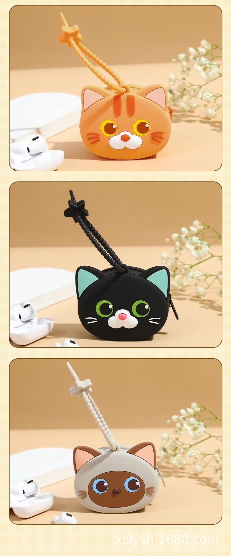만화 어린이 재미있는 야옹 실리콘 가방 펜던트 귀여운 새끼 고양이 블루투스 헤드셋 저장 가방 미니 동전 지갑스토어 가기