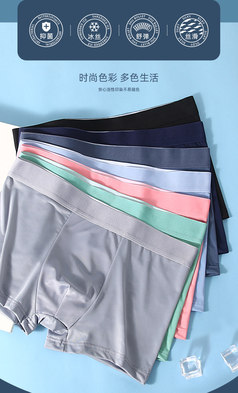 남성 속옷 남자의 원활한 통기성 아이스 실크 복서 느슨한 원활한 반바지 소년 여름 얇은 도매