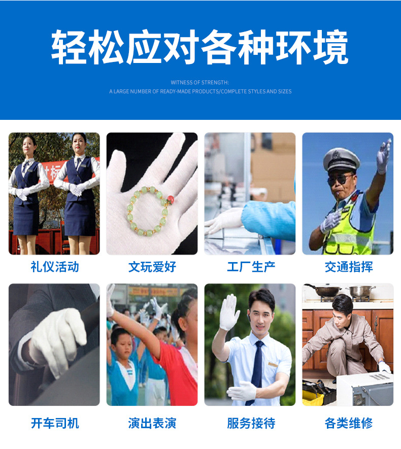 원산지 공장 흰색 장갑 순면 흰색 장갑 예절 장갑 공장 작업용 장갑 해외 무역용 흰색 장갑스토어 가기